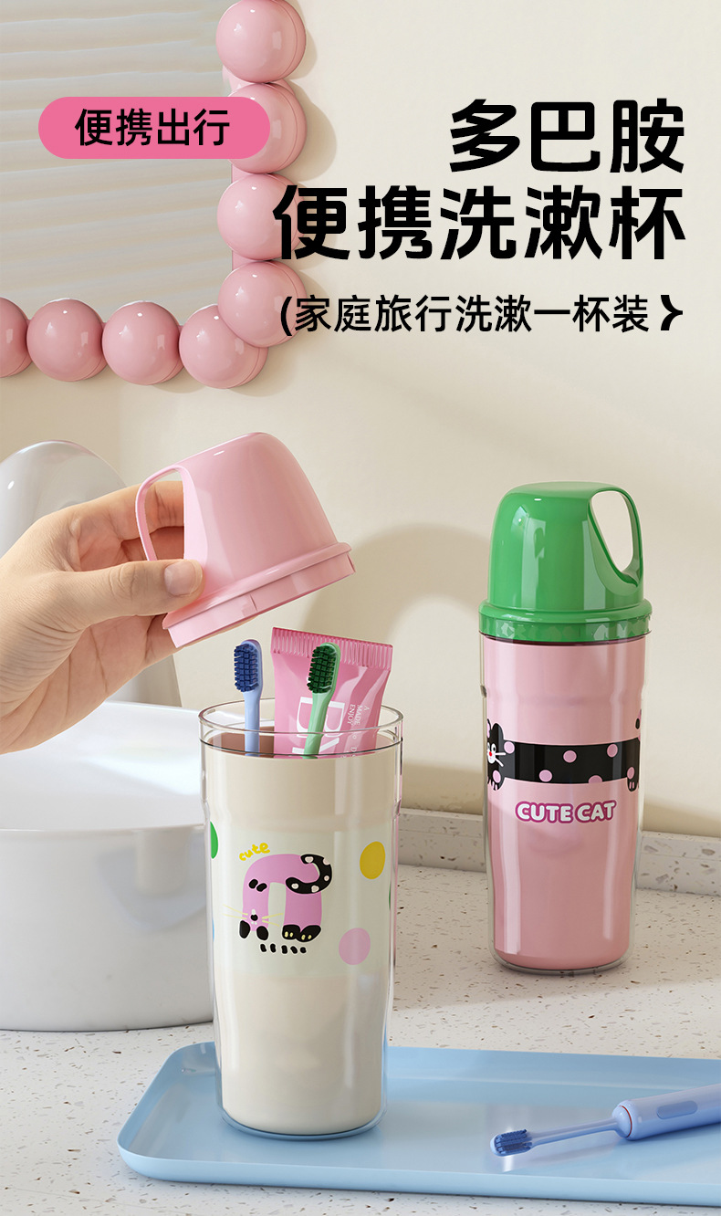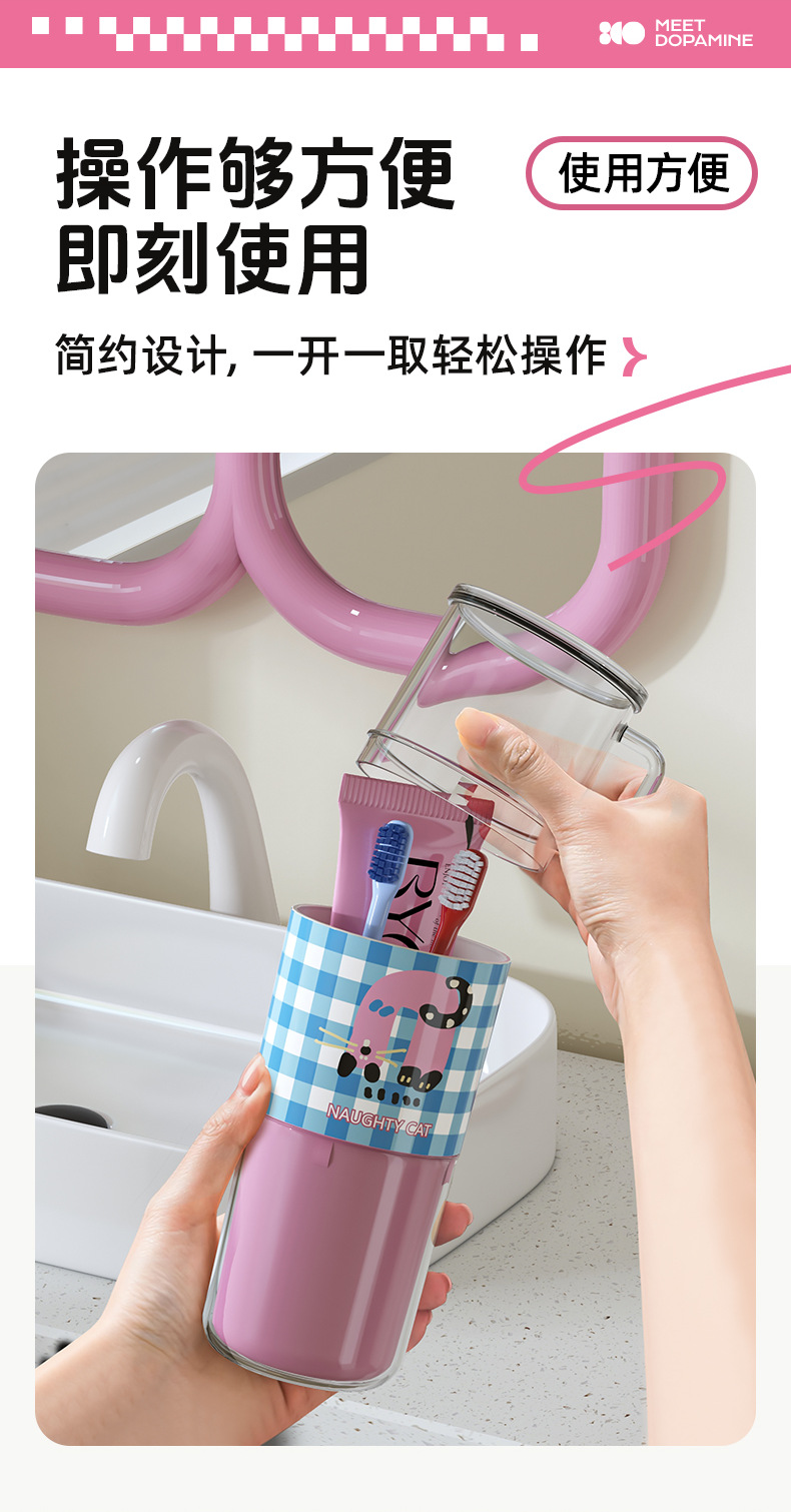 만화 도파민 여행 세척 컵 휴대용 칫솔 보관 상자 3 대 1 치과 구강 세척 컵 가정 학생