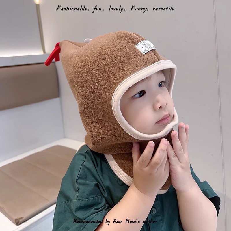 귀여운 어린이 수탉 모자 가을과 겨울 따뜻한 방풍 귀 보호 캡 아기 모자 스카프 올인원 모자