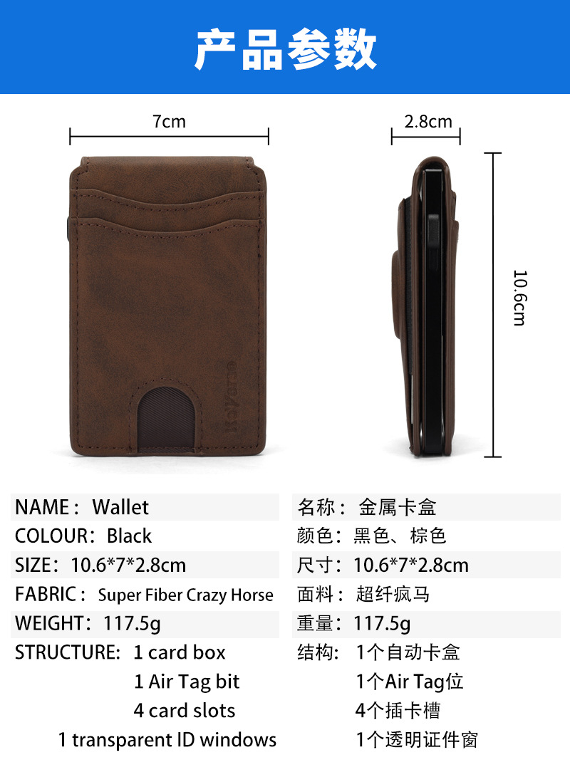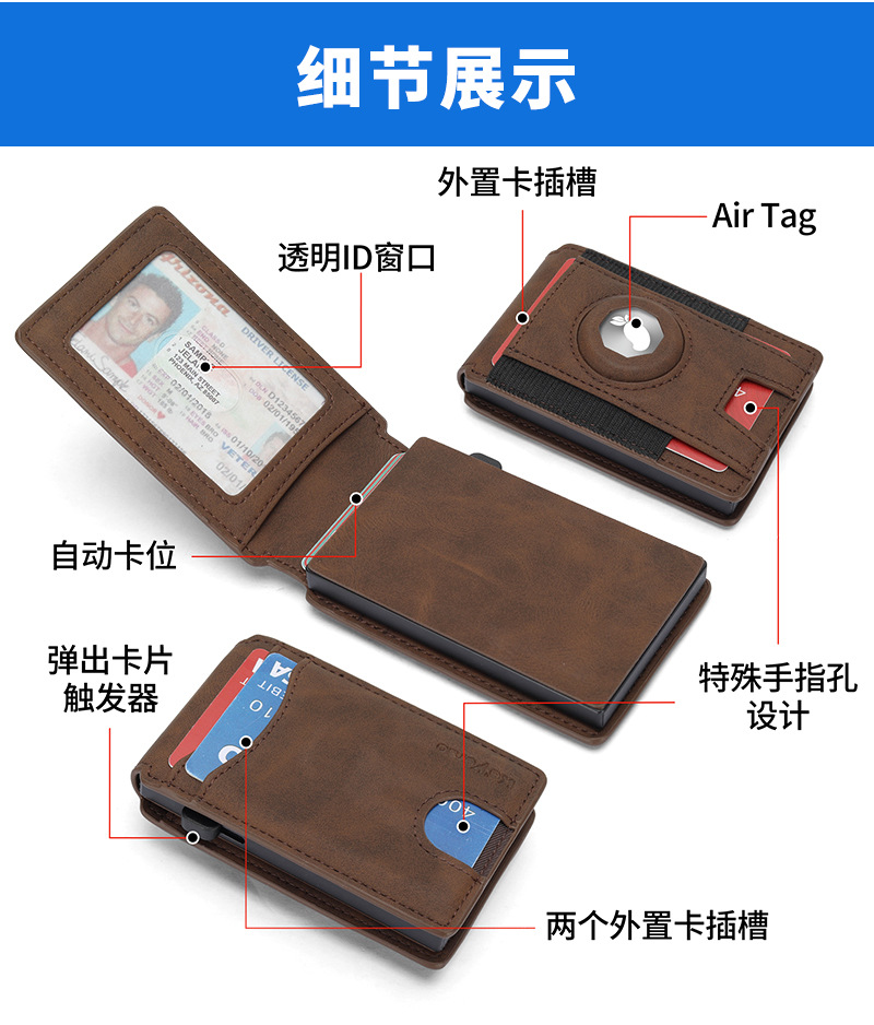 국경 간 짧은 도난 방지 브러시 동전 지갑 남성용 에어태그 포지셔닝 카드 홀더 플립 멀티 카드 슬롯 정품 가죽 남성용 지갑스토어 가기