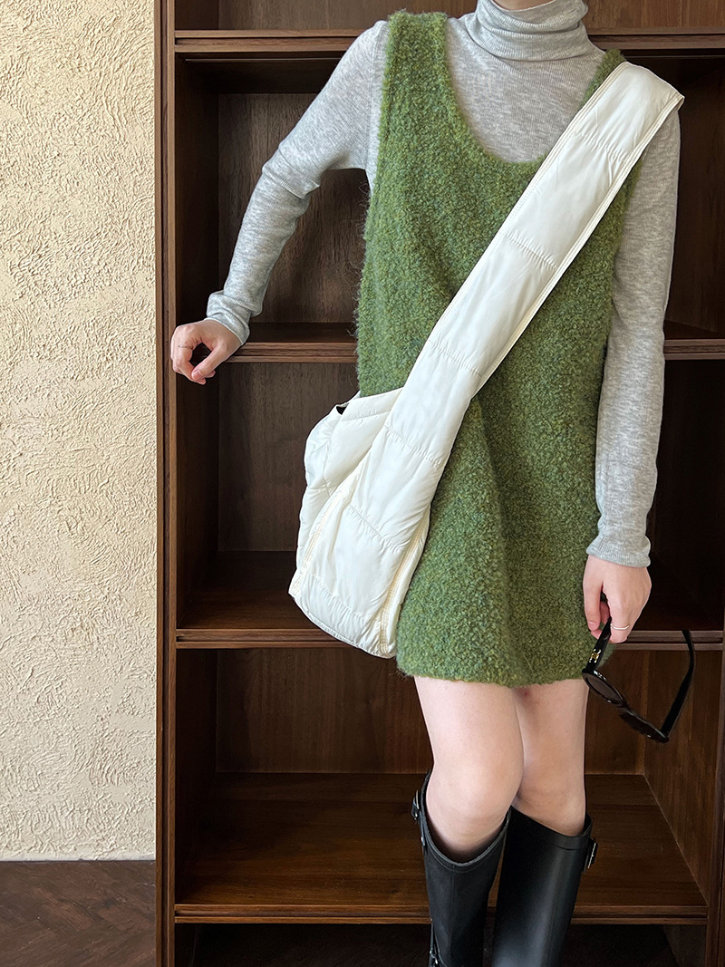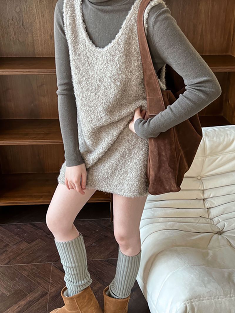 룩시-한국식 분위기 U-넥 헐렁한 슬림 핏 울 루프 울 니트 조끼 원피스 ss652