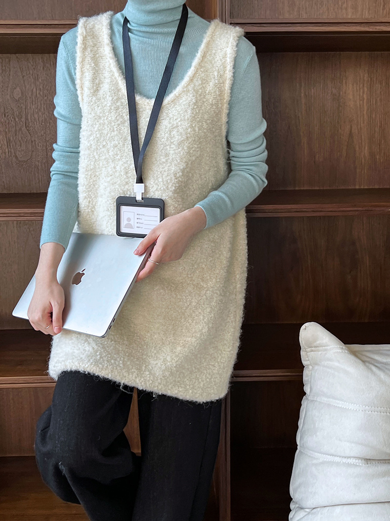 룩시-한국식 분위기 U-넥 헐렁한 슬림 핏 울 루프 울 니트 조끼 원피스 ss652스토어 가기