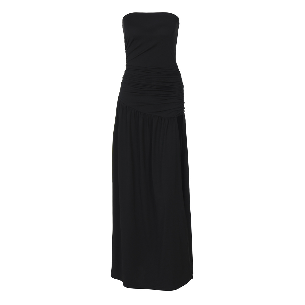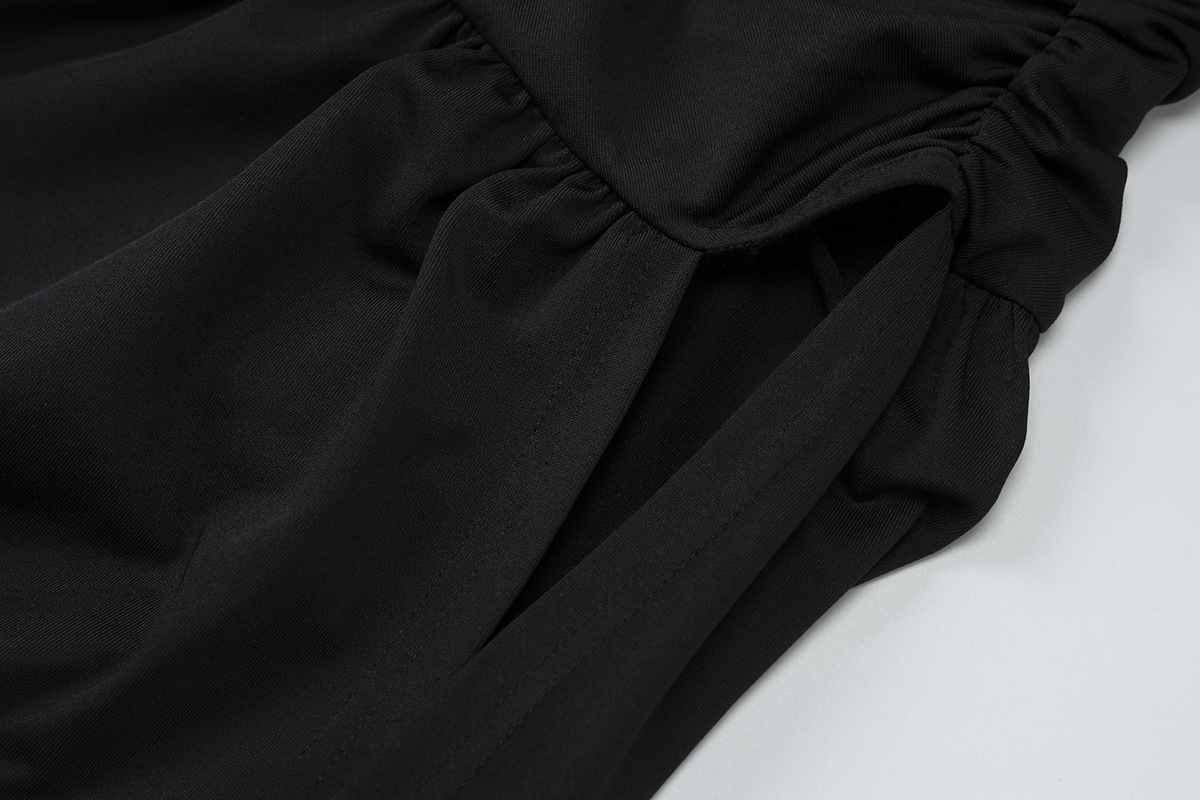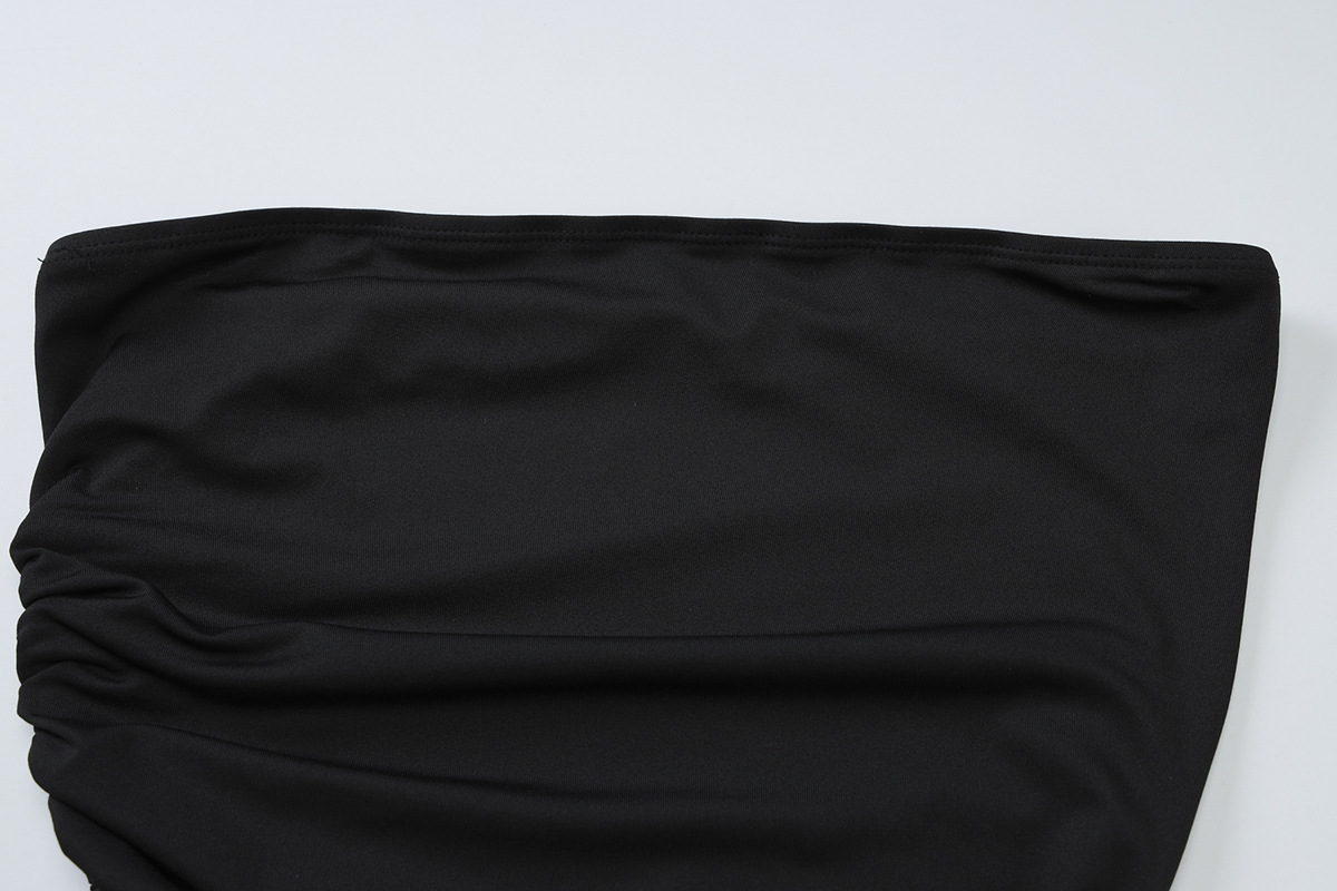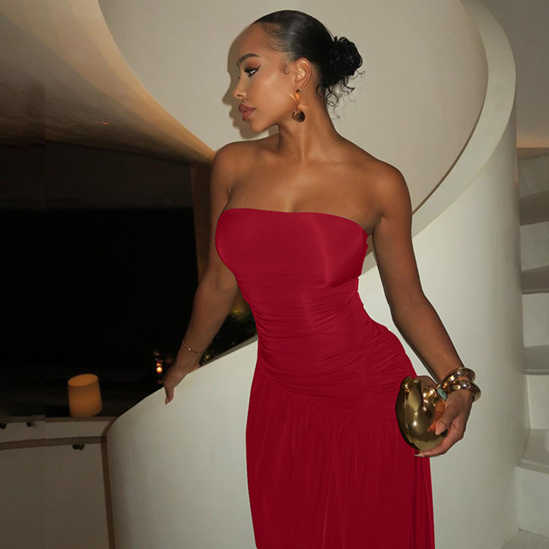 유럽과 미국 스타일 2025 봄, 여성의 새로운 단색 기질 튜브 길이 원피스 주름 분할 패션 원피스스토어 가기