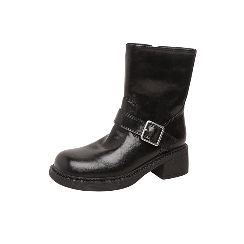 씻은 Cowhide ~ 두꺼운 바닥 짧은 부츠 여성의 가을 및 겨울 새로운 두꺼운 힐 마틴 부츠 올 매치 영국 스타일 사이드 지퍼 얇은 부츠스토어 가기