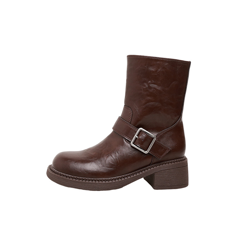 씻은 Cowhide ~ 두꺼운 바닥 짧은 부츠 여성의 가을 및 겨울 새로운 두꺼운 힐 마틴 부츠 올 매치 영국 스타일 사이드 지퍼 얇은 부츠