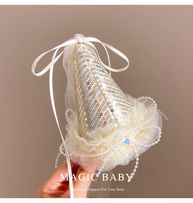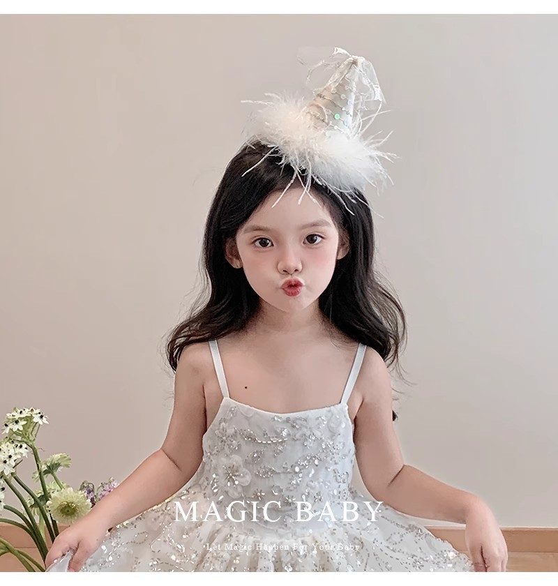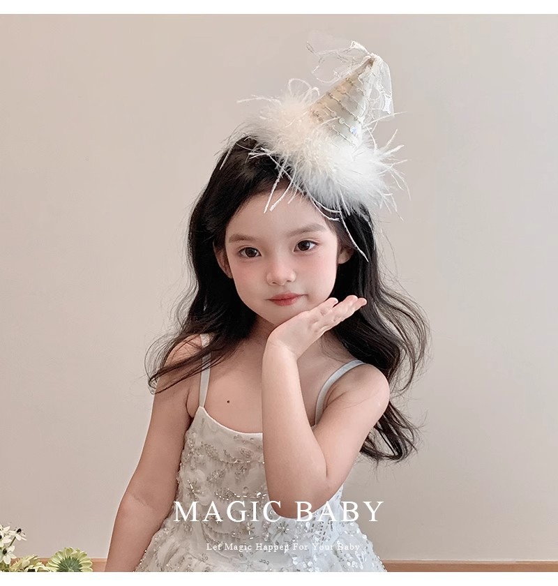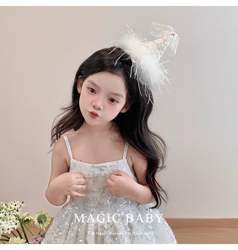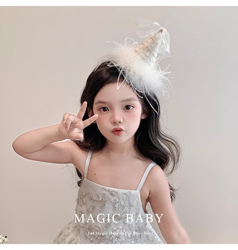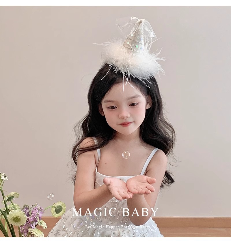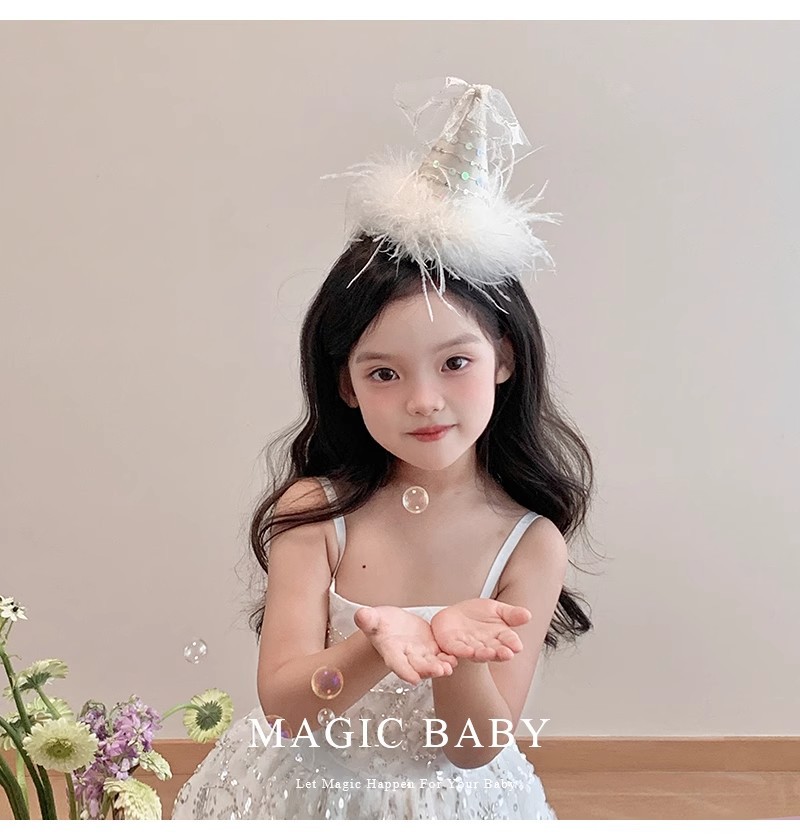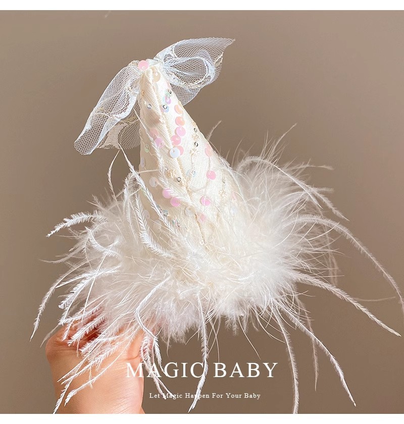• 흰색 스팽글 깃털 생일 모자 머리핀