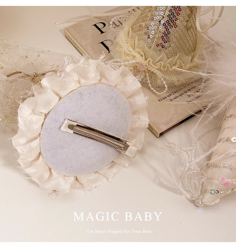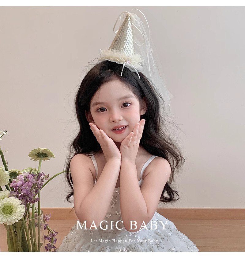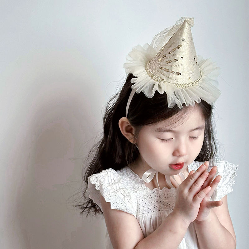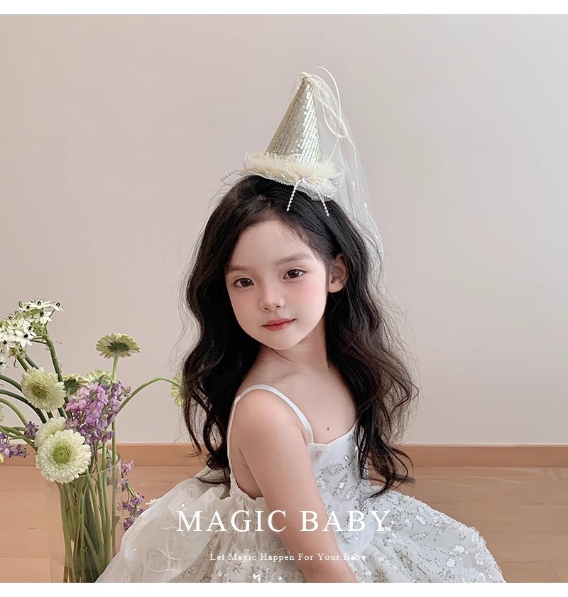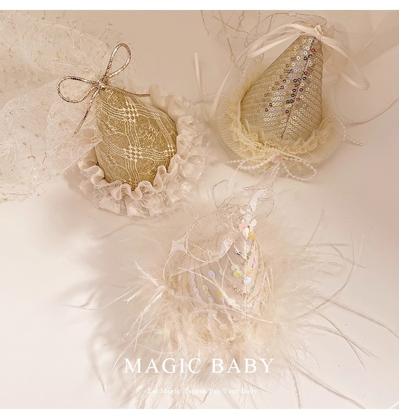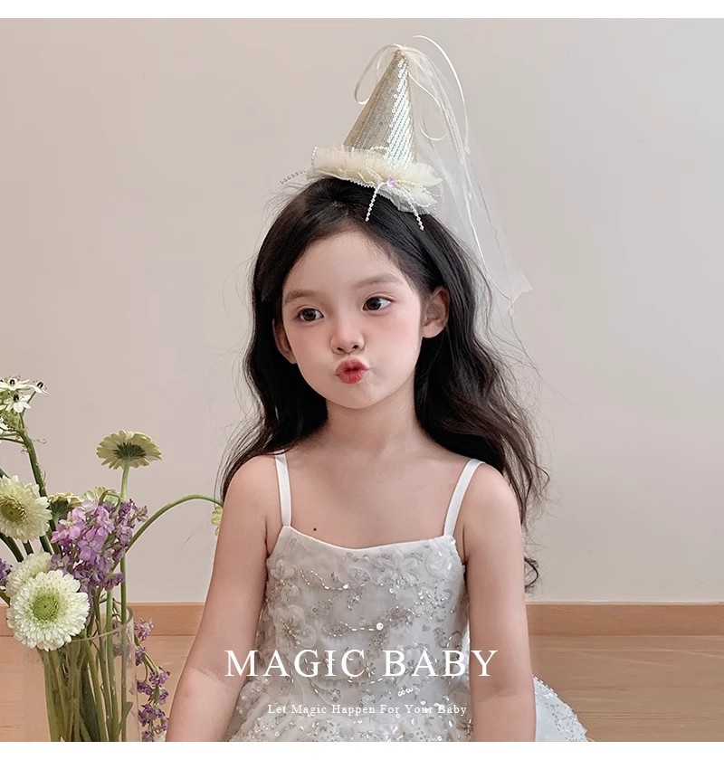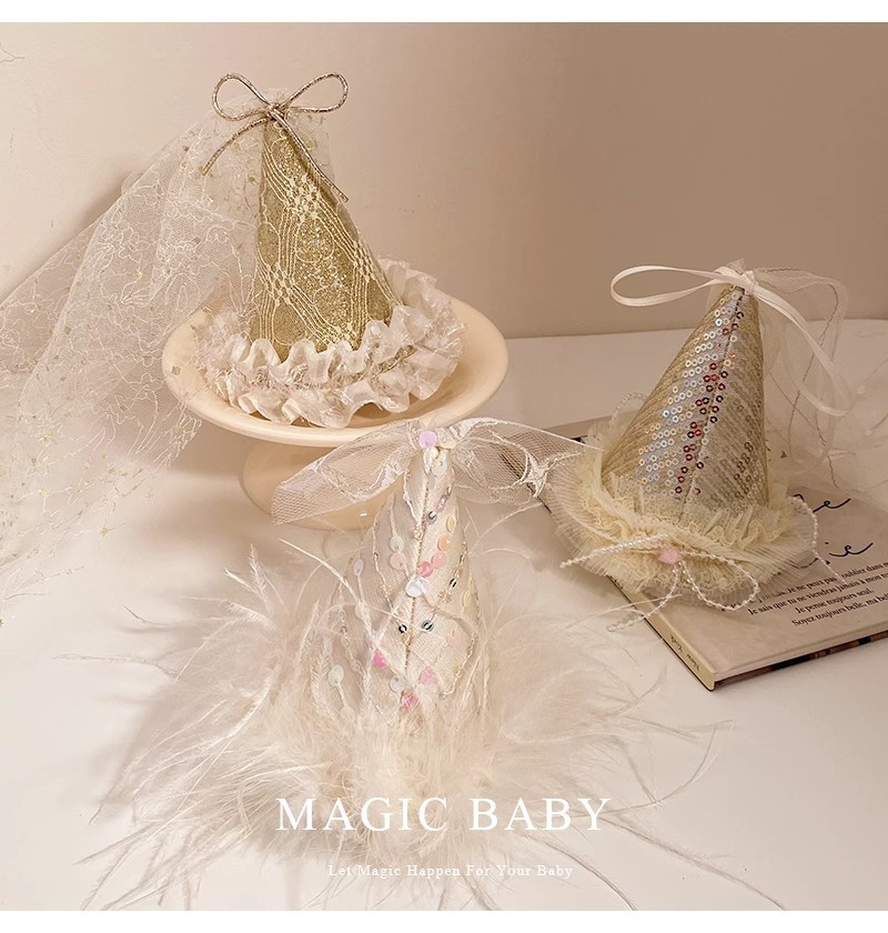 • 흰색 스팽글 깃털 생일 모자 머리핀
