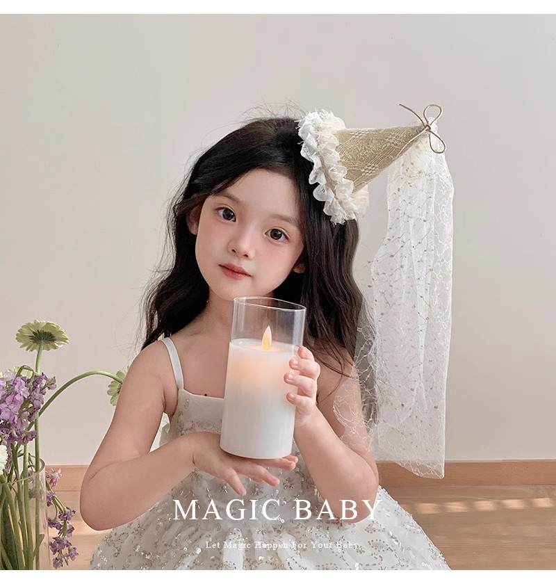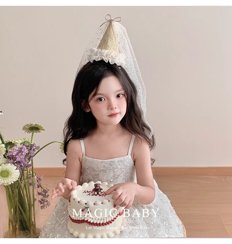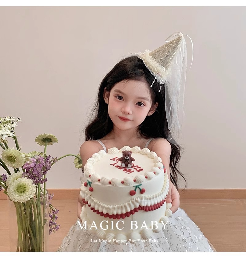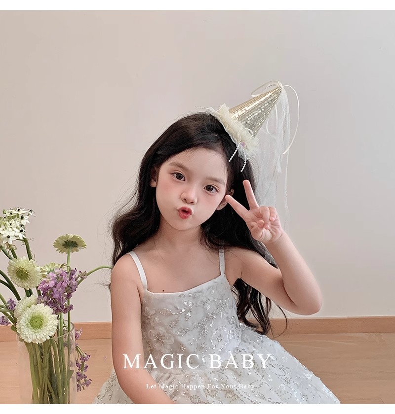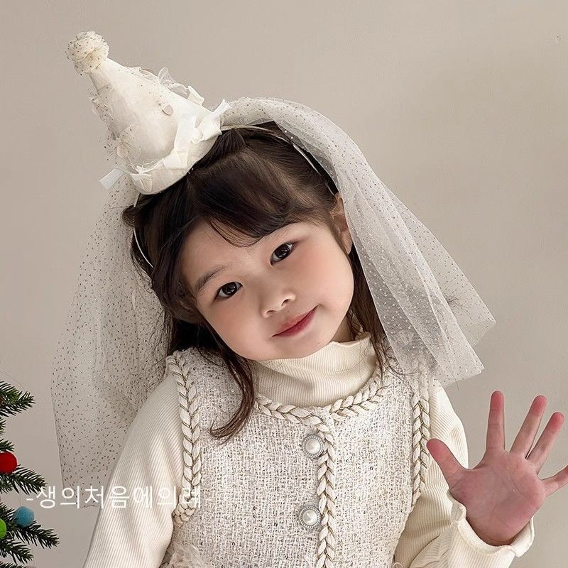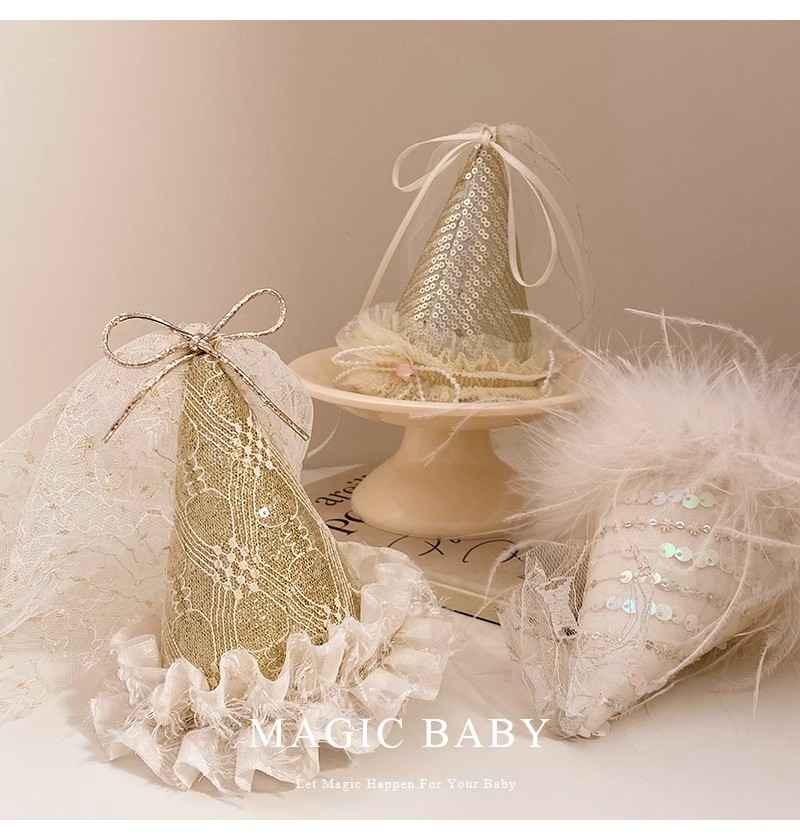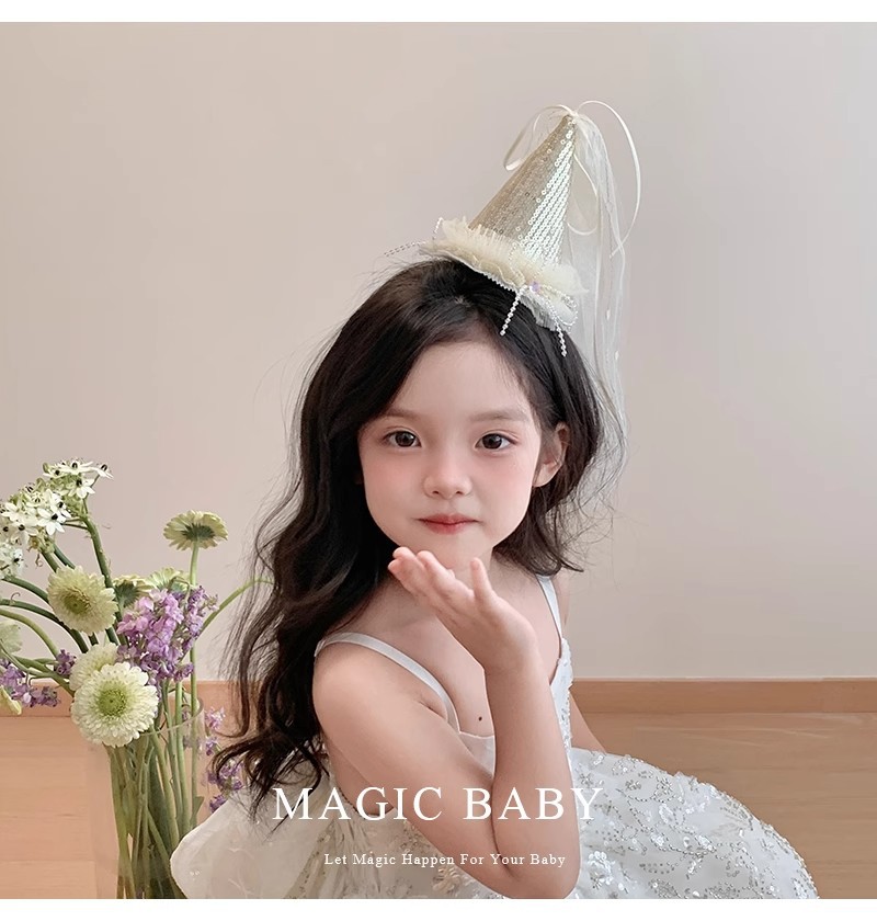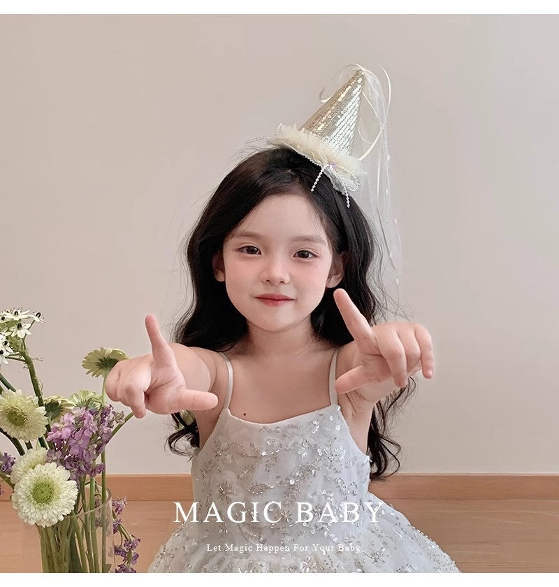 • 흰색 스팽글 깃털 생일 모자 머리핀