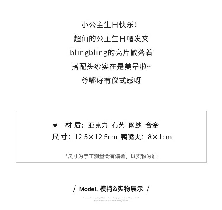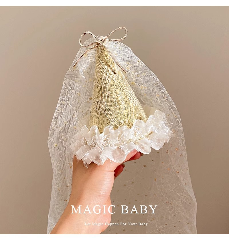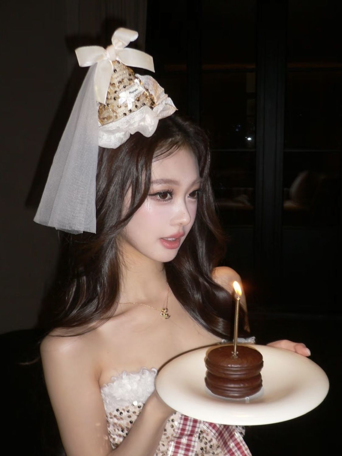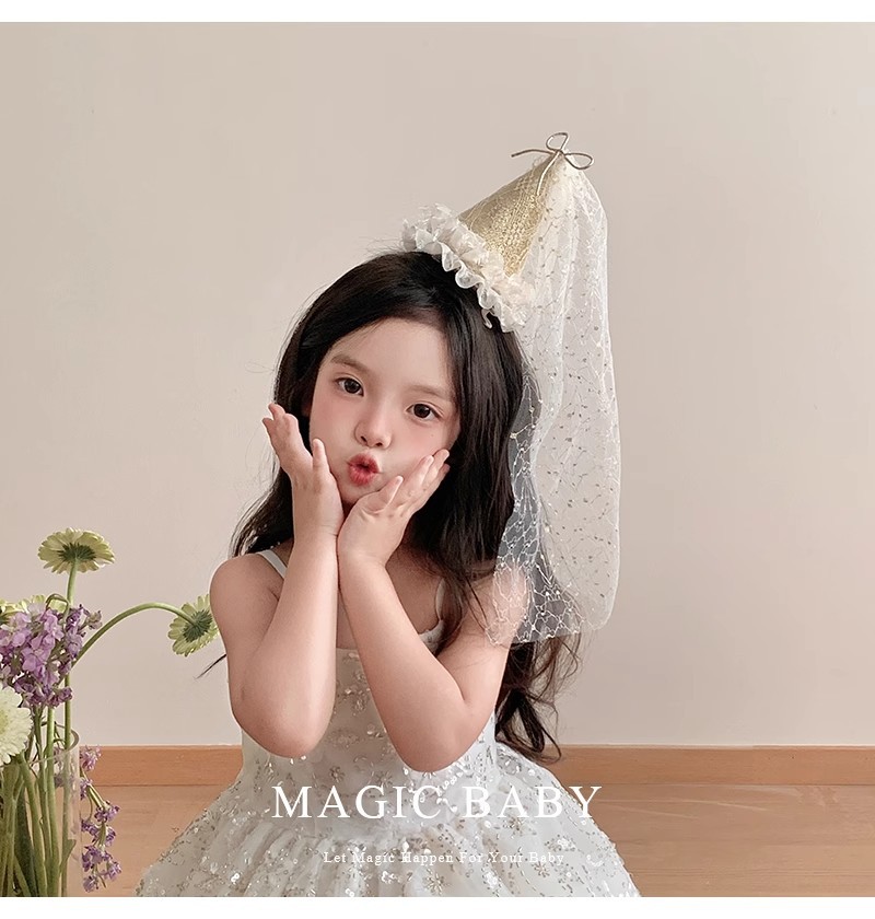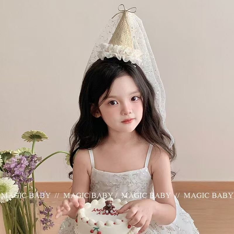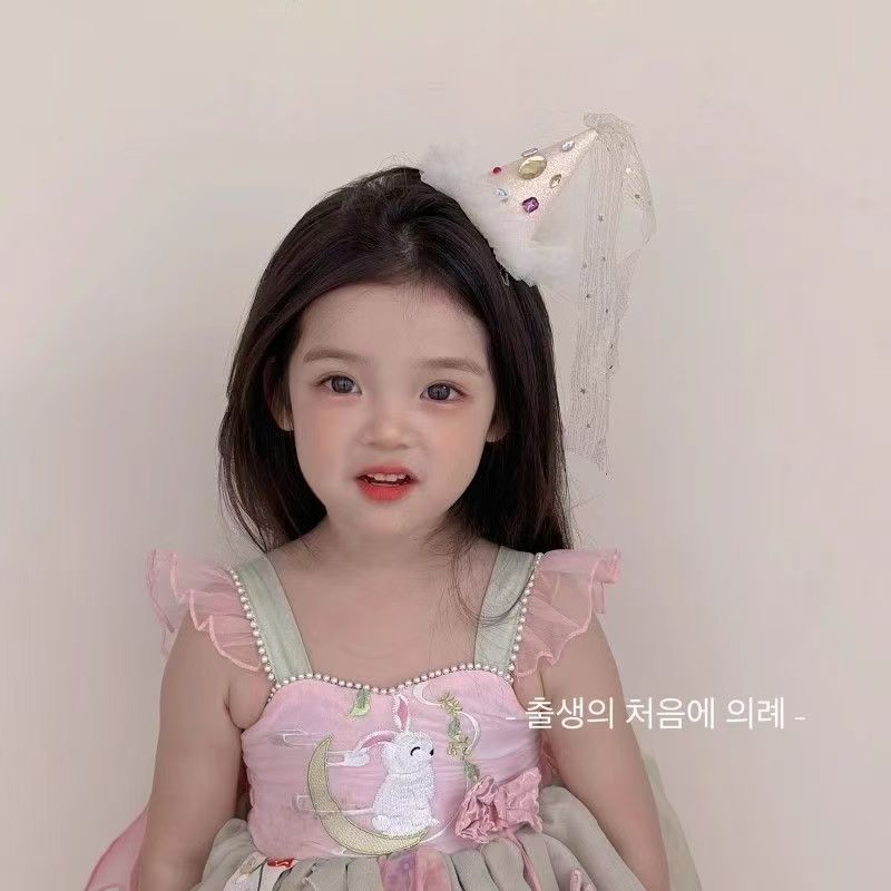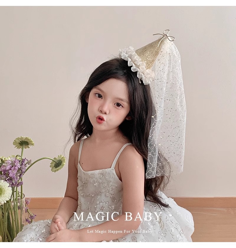 • 흰색 스팽글 깃털 생일 모자 머리핀