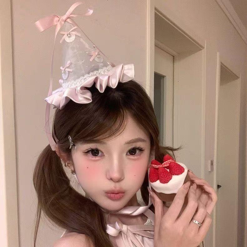 • 핑크색 생일 곡선 모자 머리핀