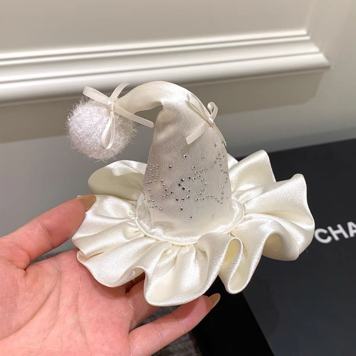 • 화이트 라인스톤 모자 머리핀