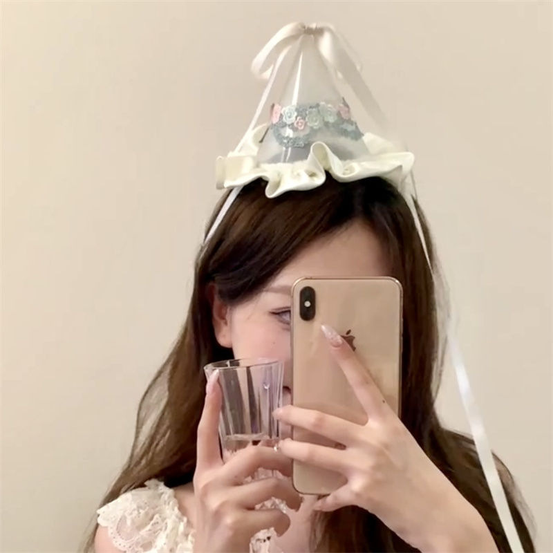 영화 너머! 화이트 깃털 생일 모자 헤드웨어 소녀 분위기 사진 소품 헤어핀 파티 헤어 액세서리