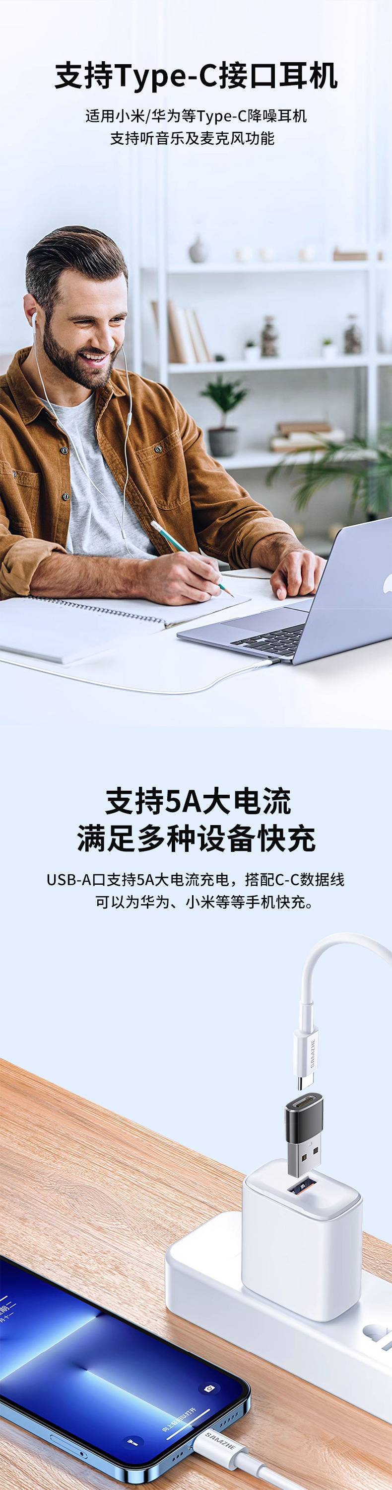 USB2.0 남성 어댑터 숨겨진 OTG에 TYPE-C 여성 어댑터를 TYPE-C USB 혁명