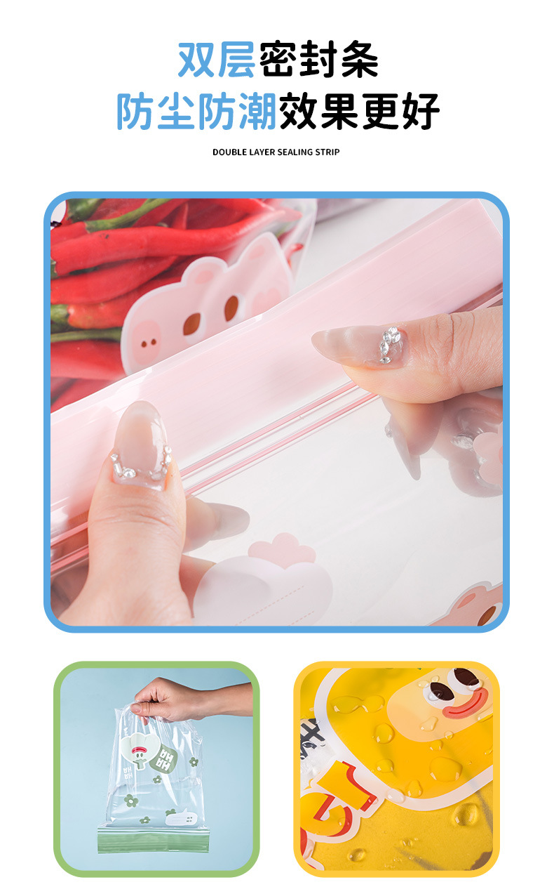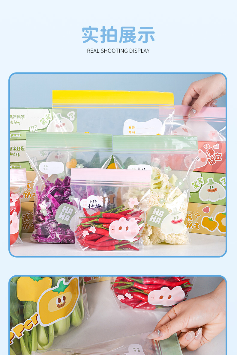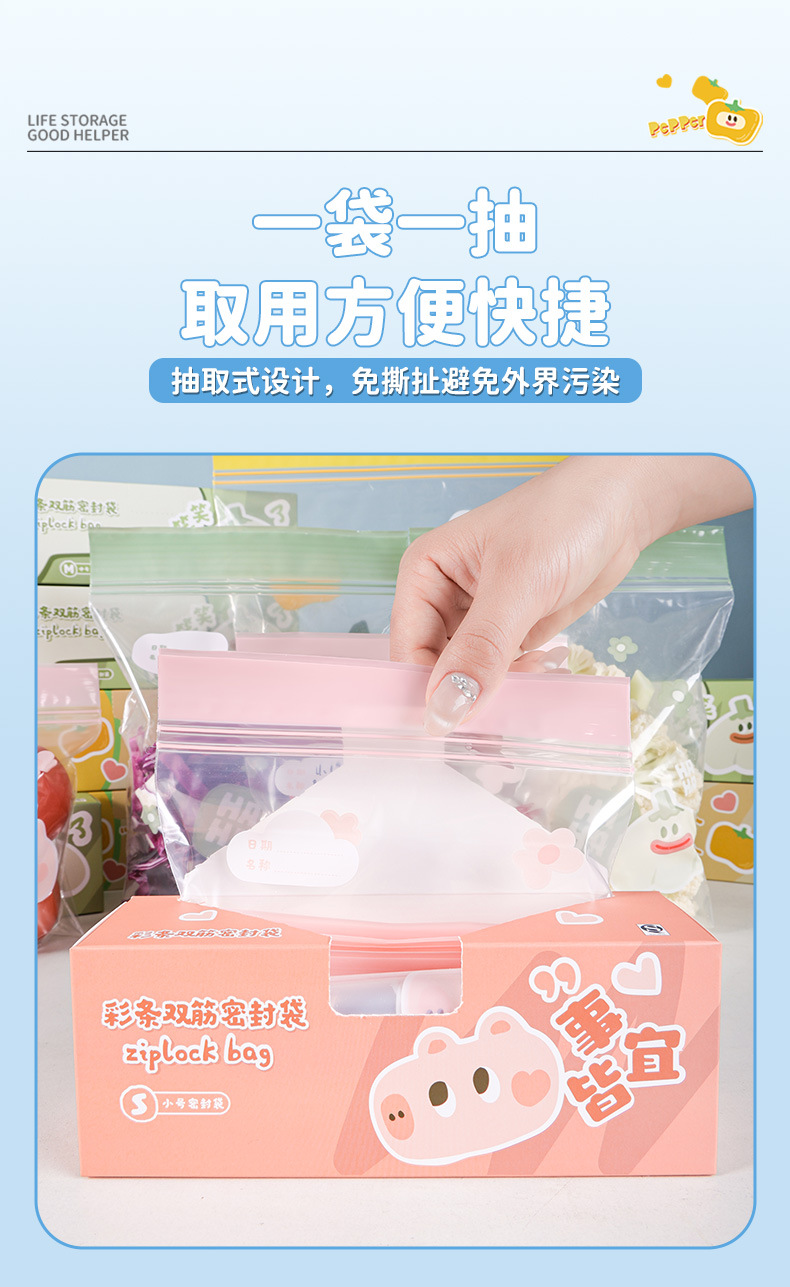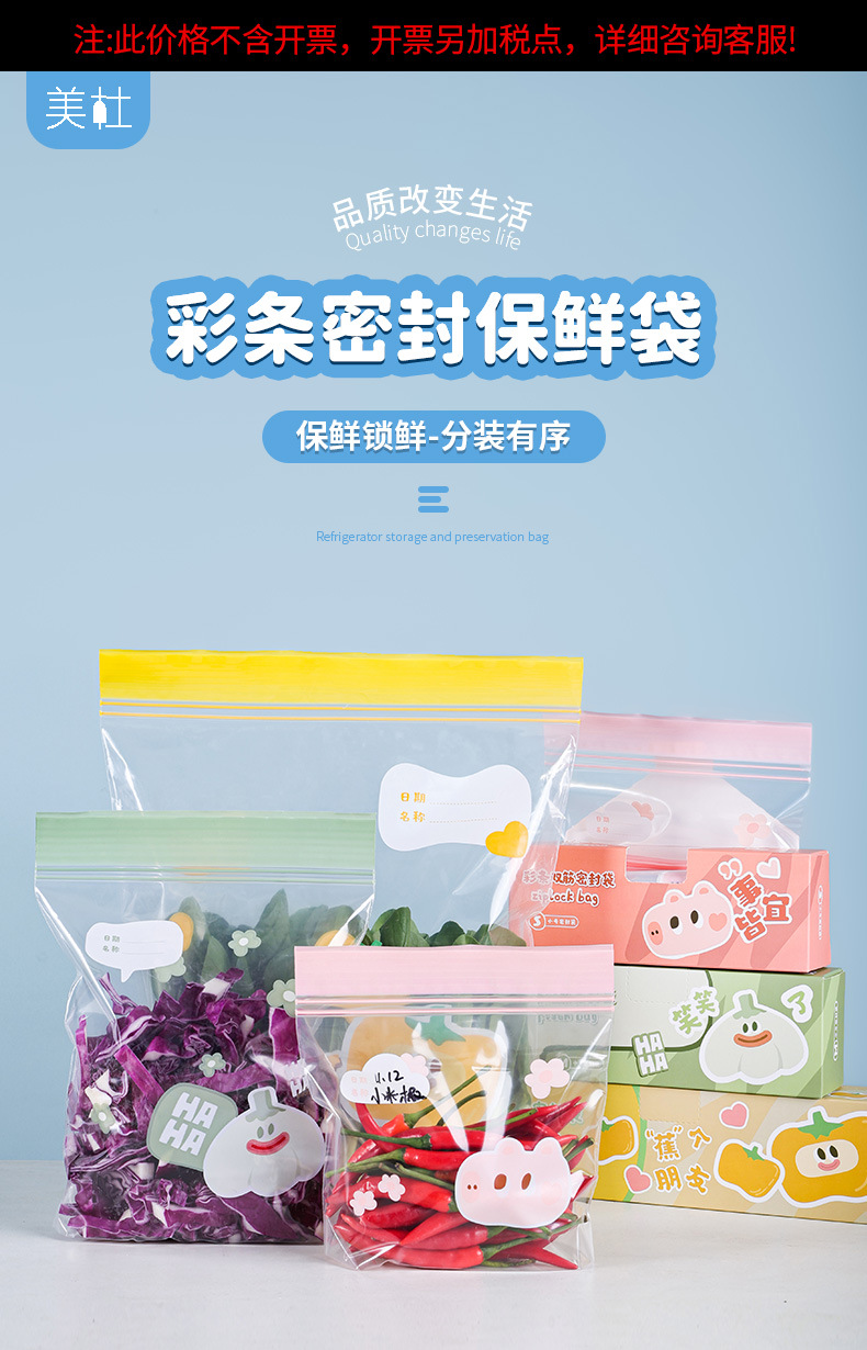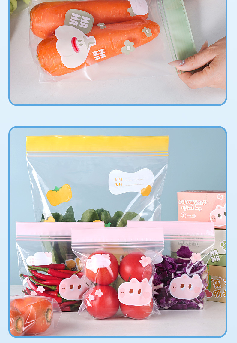메이두 컬러 스트립 더블 리브 보존 가방 두꺼운 식품 등급 밀봉 보존 가방 냉장고 냉동 분류 저장 방지 가방