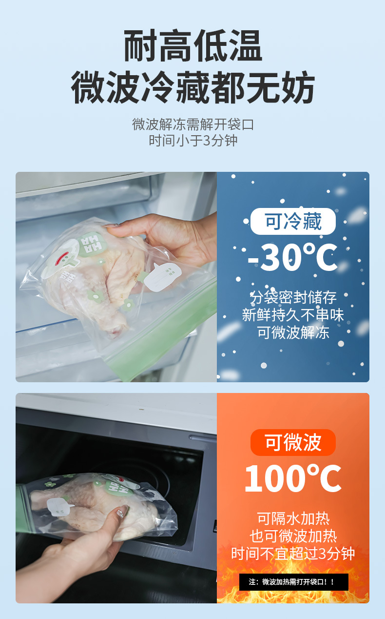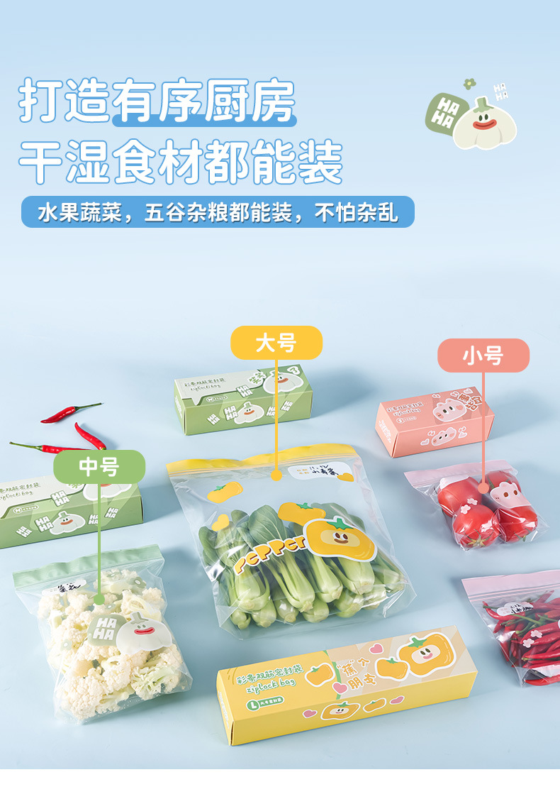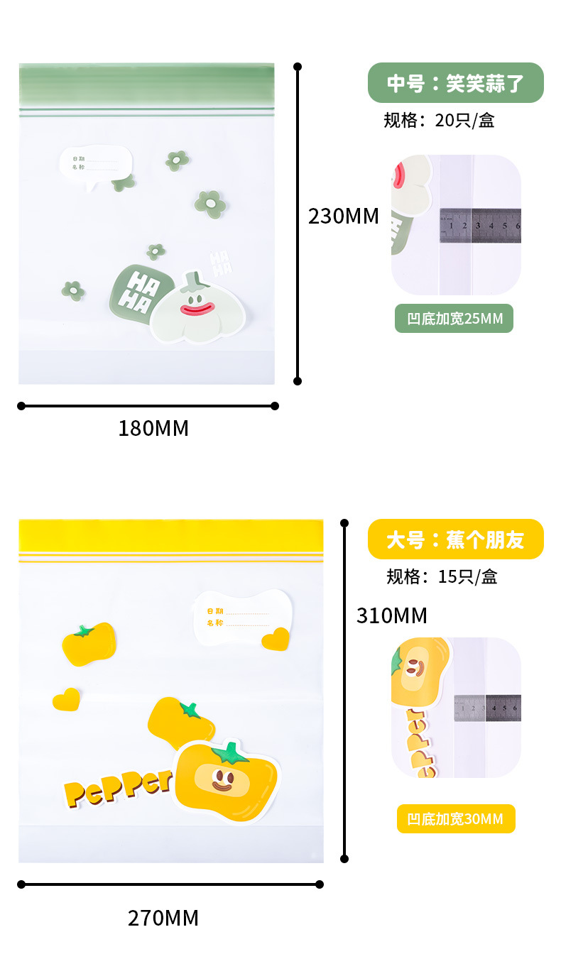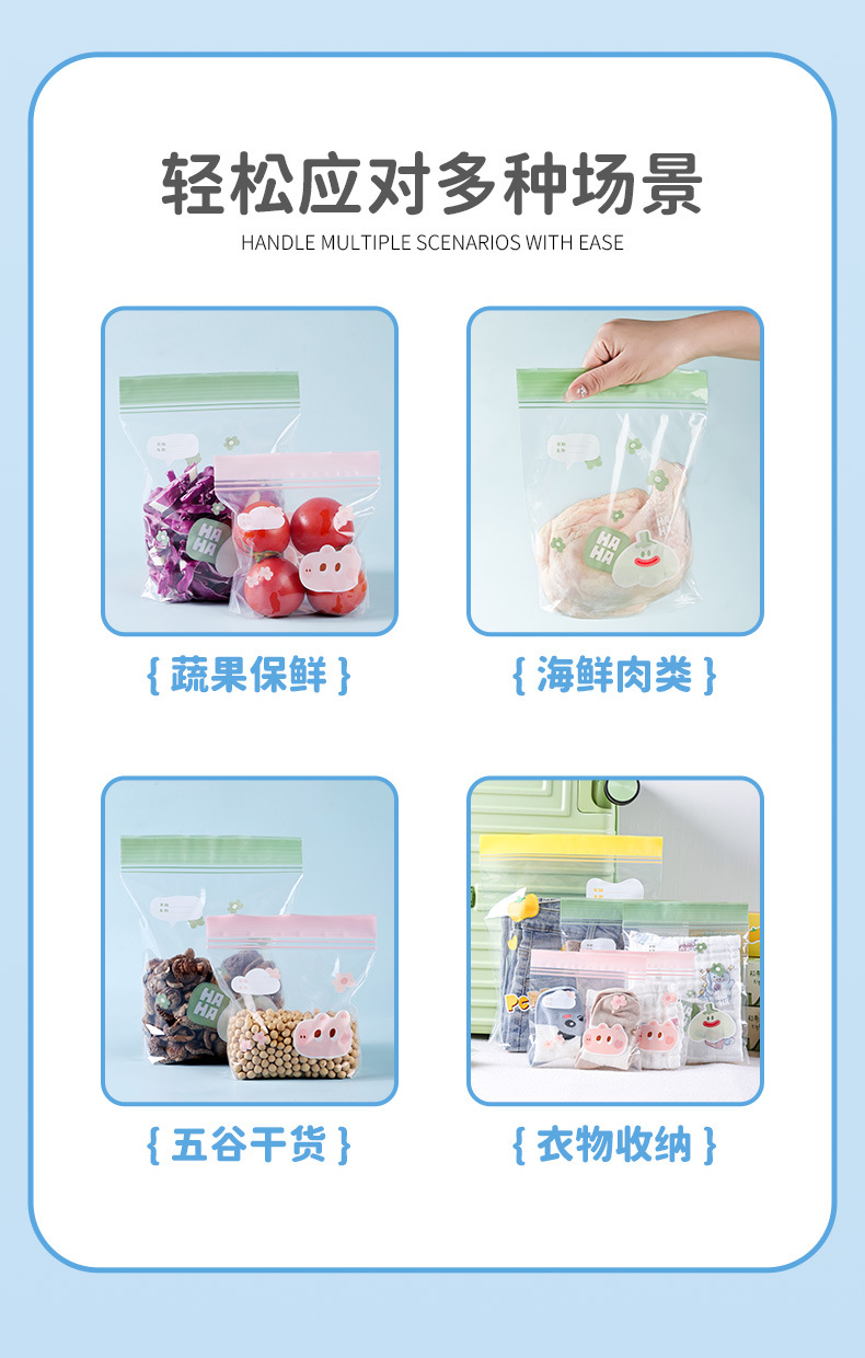 메이두 컬러 스트립 더블 리브 보존 가방 두꺼운 식품 등급 밀봉 보존 가방 냉장고 냉동 분류 저장 방지 가방