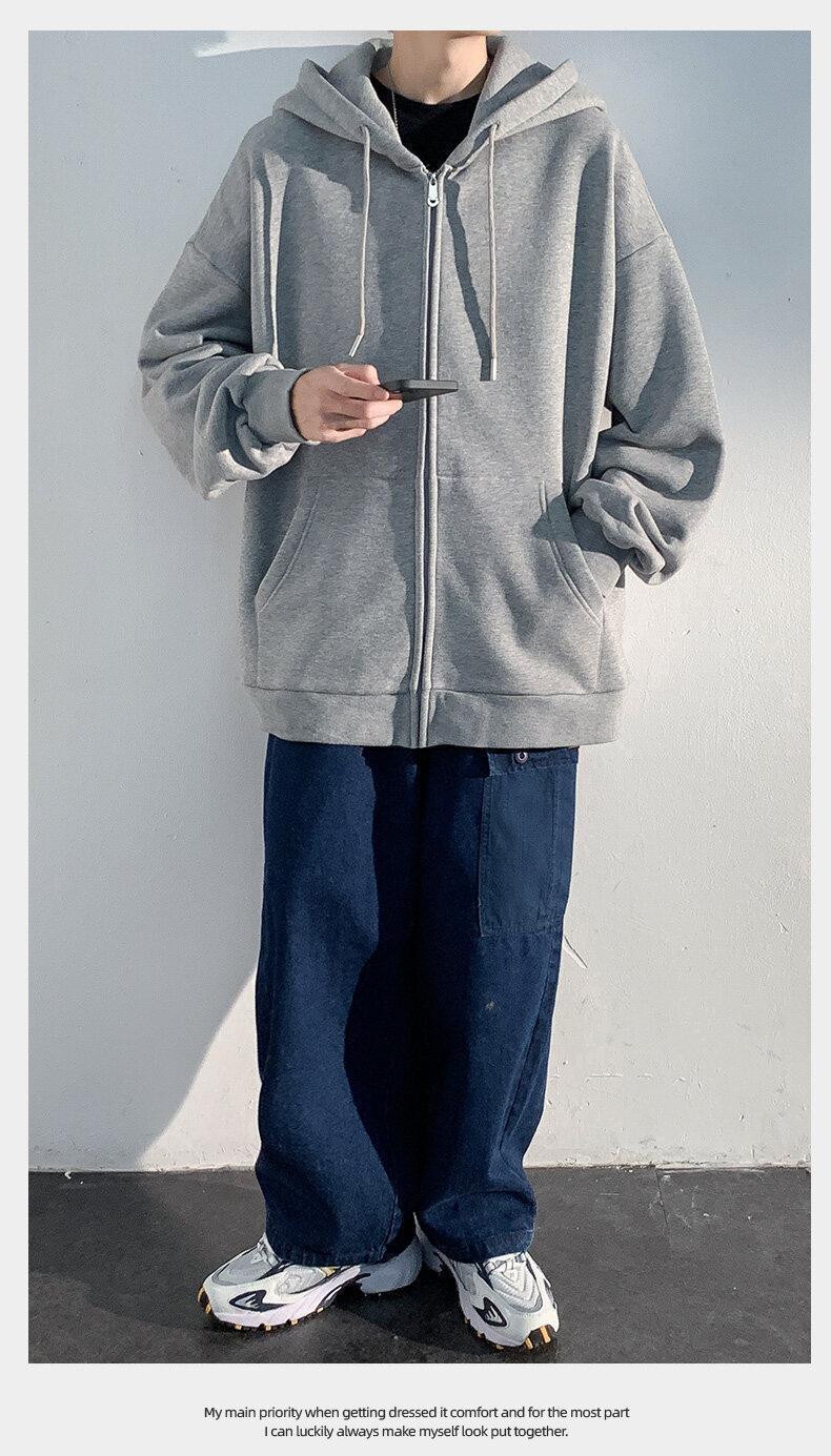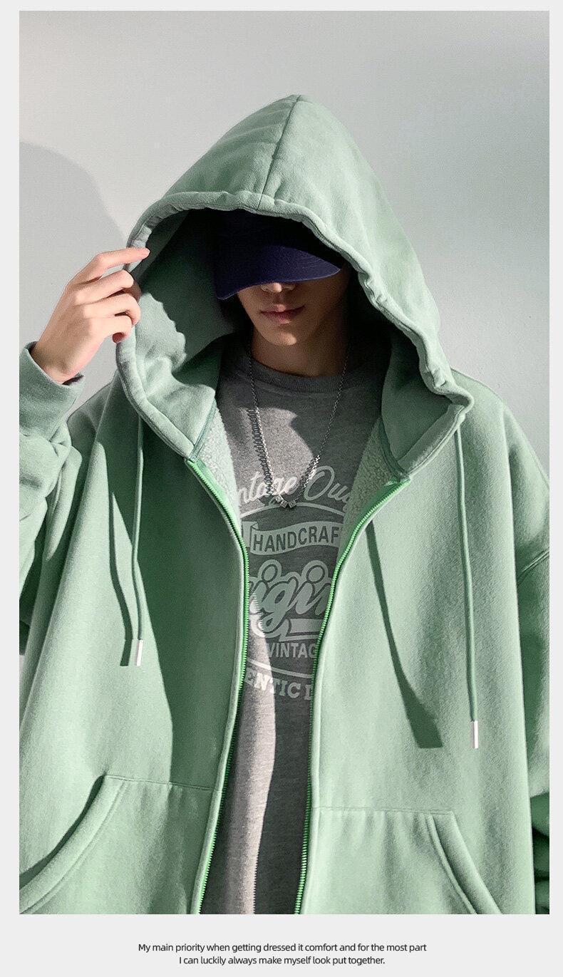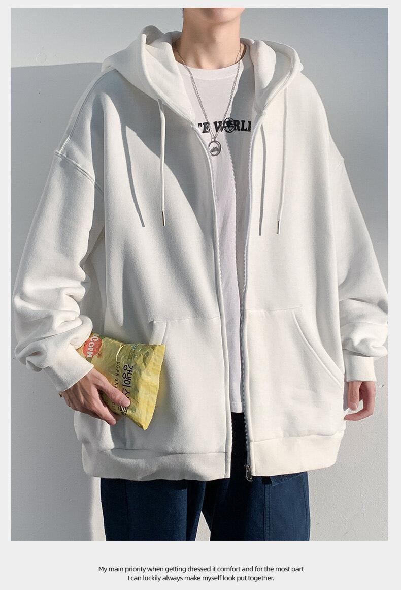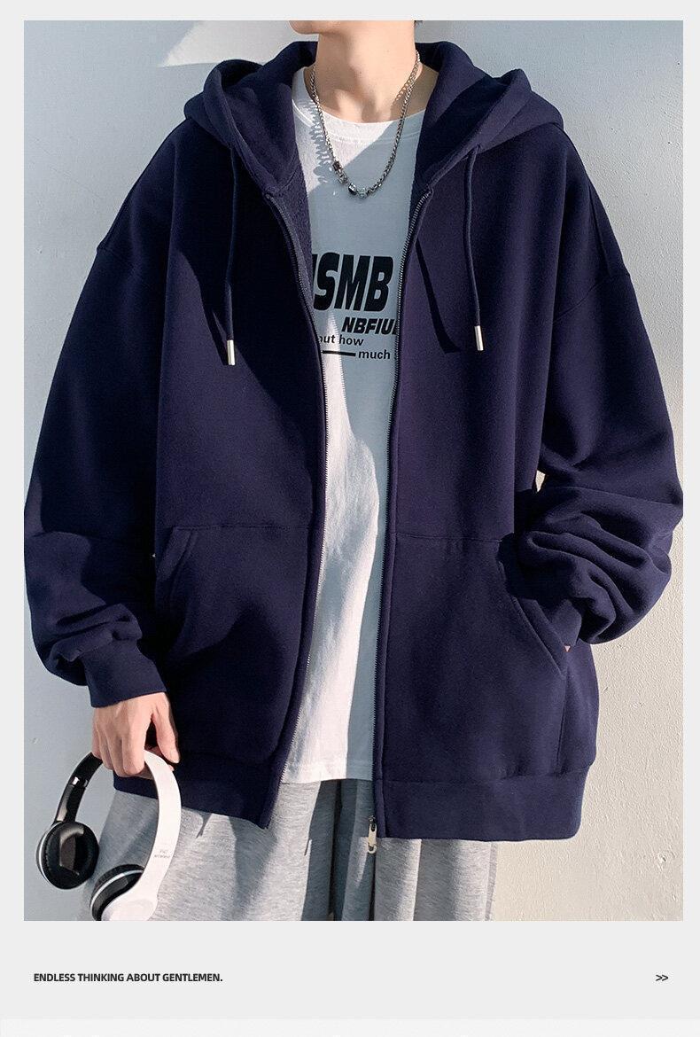 지퍼 카디건 스웨터 남자 홍콩 스타일 트렌디 브랜드 루즈 후드 자켓 유행 Ins 가을 십대 솔리드 컬러 탑스토어 가기