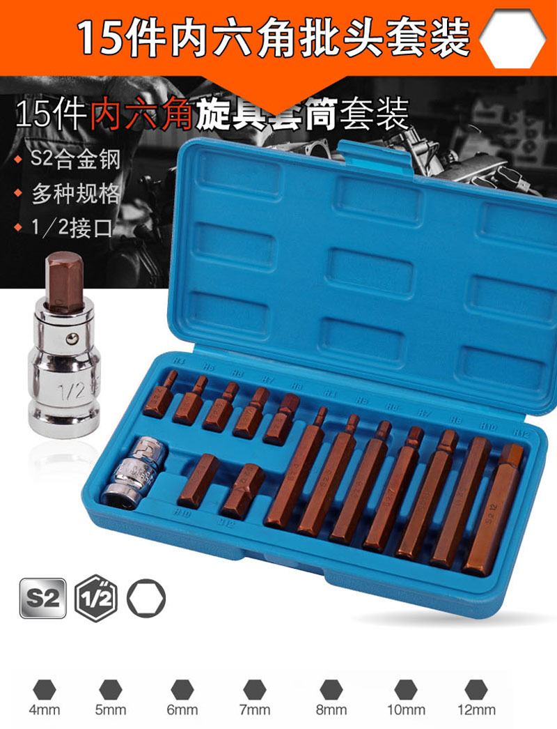 1/2 강화 S2 육각형 소켓 전기 렌치 빅 플라이 6-엣지 스퀘어 공압 공기총 세트 동일한 배치 헤드스토어 가기