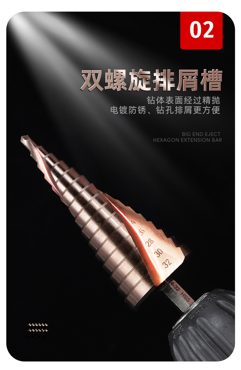 파고다 드릴 홀 오프닝 홀 드릴링 스틸 슈퍼 하드 리밍 테이퍼 금속 다기능 스테인레스 스틸 스텝 드릴