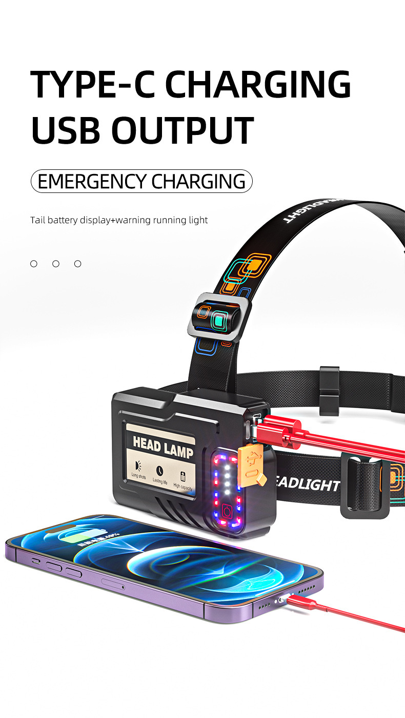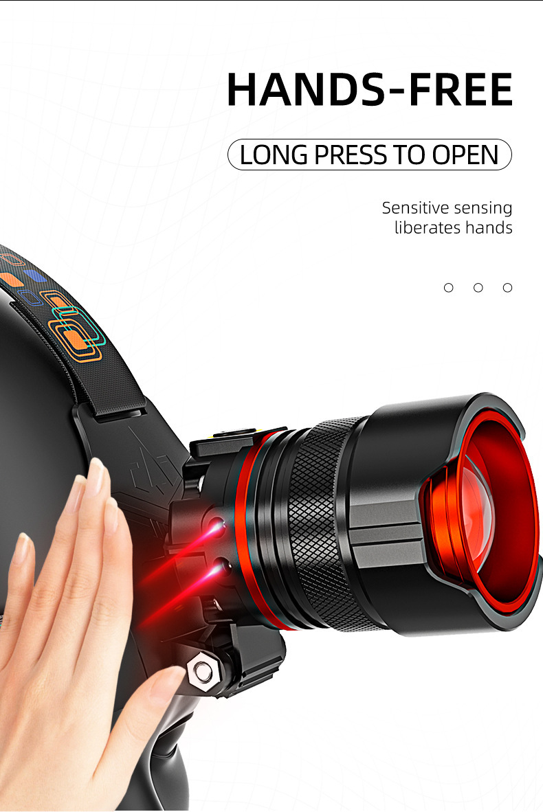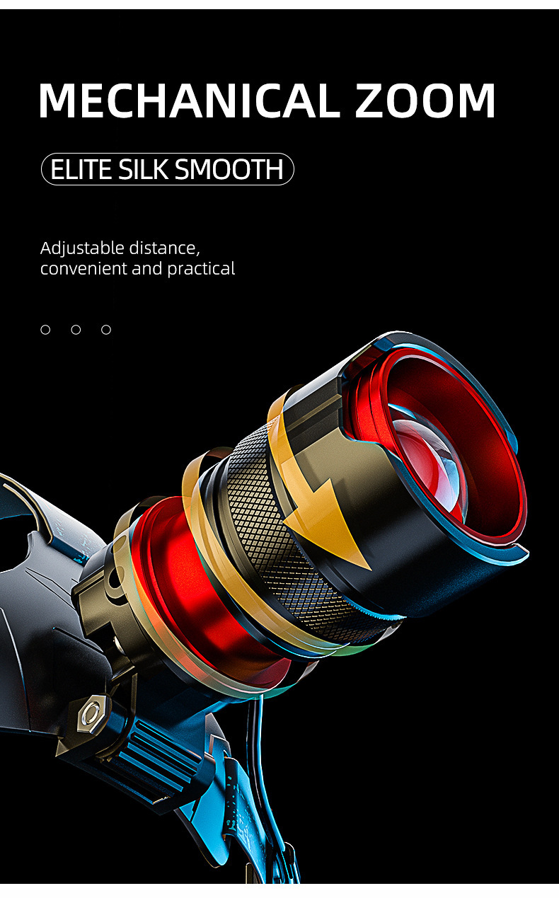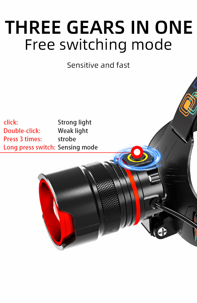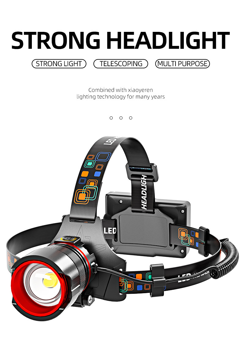 국경 새로운 긴 지구력 강한 빛 헤드 램프 야외 특별 야간 낚시 등산 비상 유도 줌 경고등
