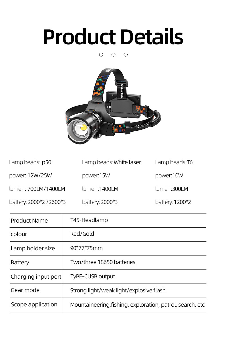 • T45Pro-P50 백색광 [2000*3 빨간색 원] 리튬 배터리 내장