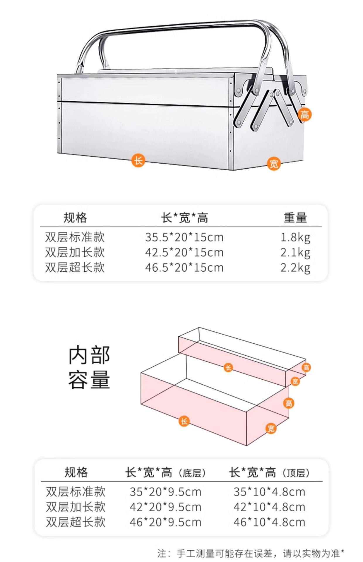 • [더블 레이어] 스테인레스 스틸 도구 상자 460 (초장거리)