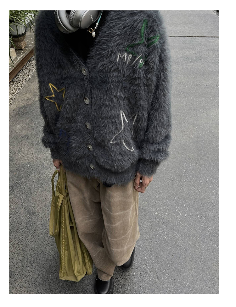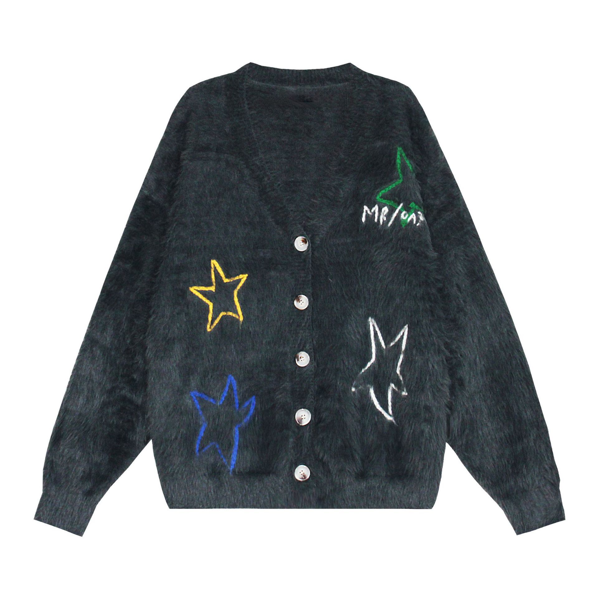 남자 2024 가을 겨울 미국 레트로 스타 자수 카디건 스웨터 남자 패셔너블 루즈 올 매치 탑 재킷스토어 가기