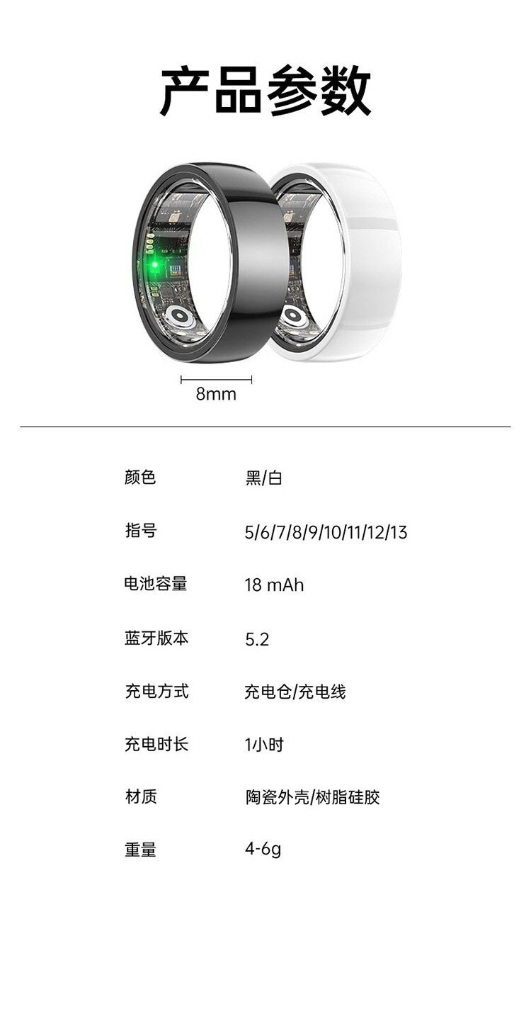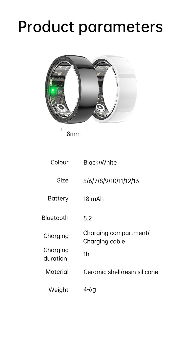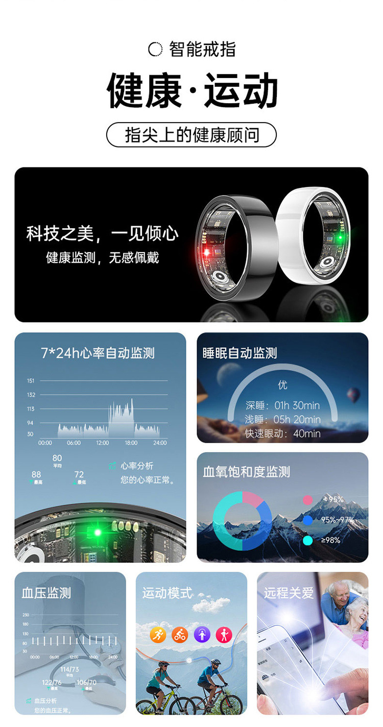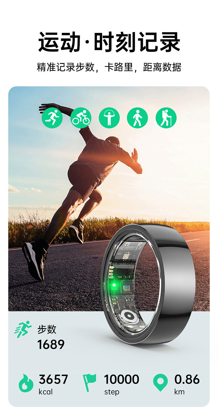국경 간 R1000 스마트 링 수면 모니터링 심박수 혈액 산소 원격 제어 셀프 타이머 단계 계산 패션 스마트 링