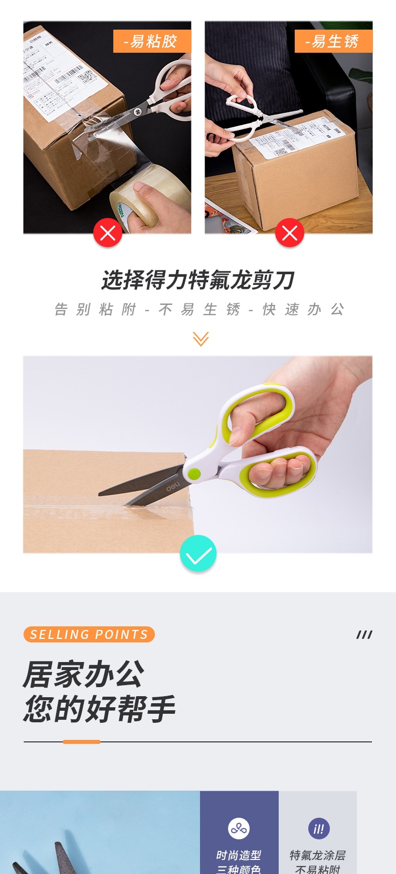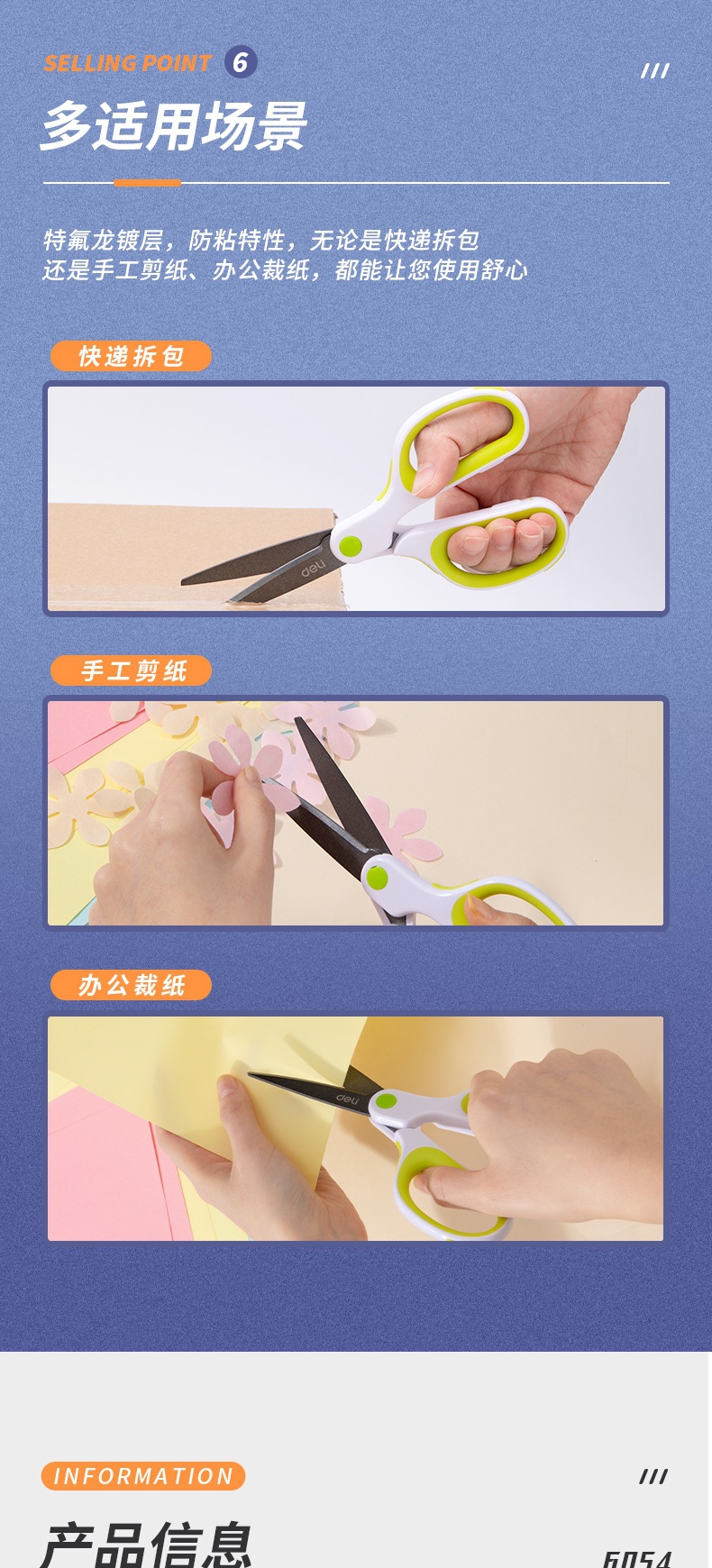 델리 6054 테플론 코팅 가위 스테인레스 스틸/사무실/아트 가위 비 스틱 테이프 수동 가위