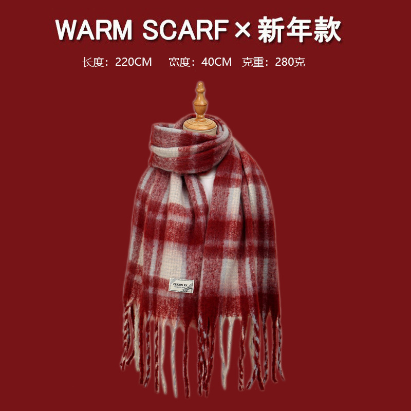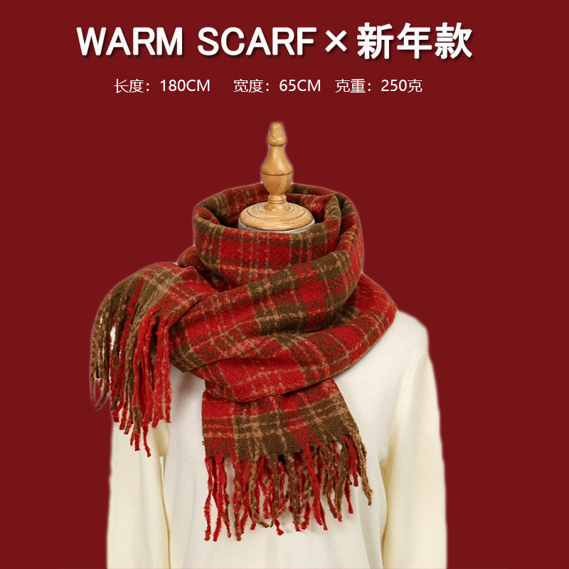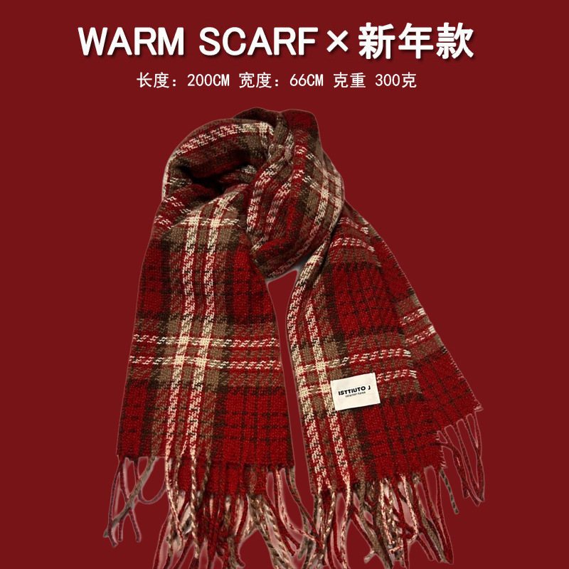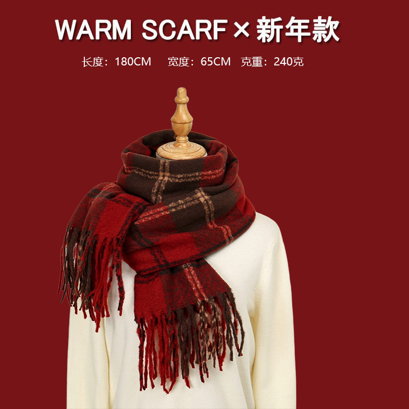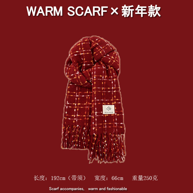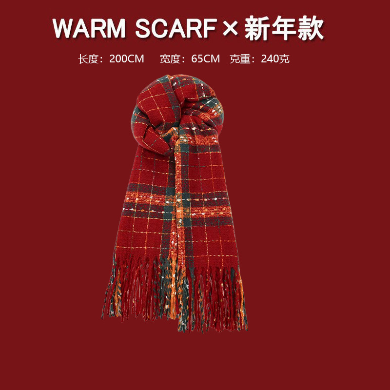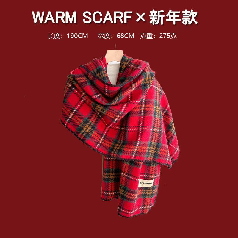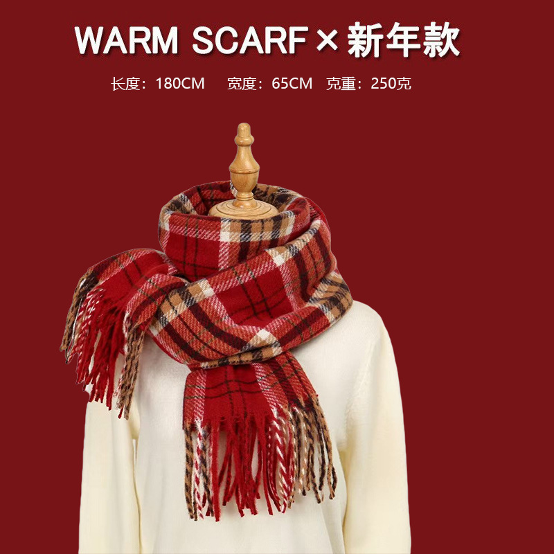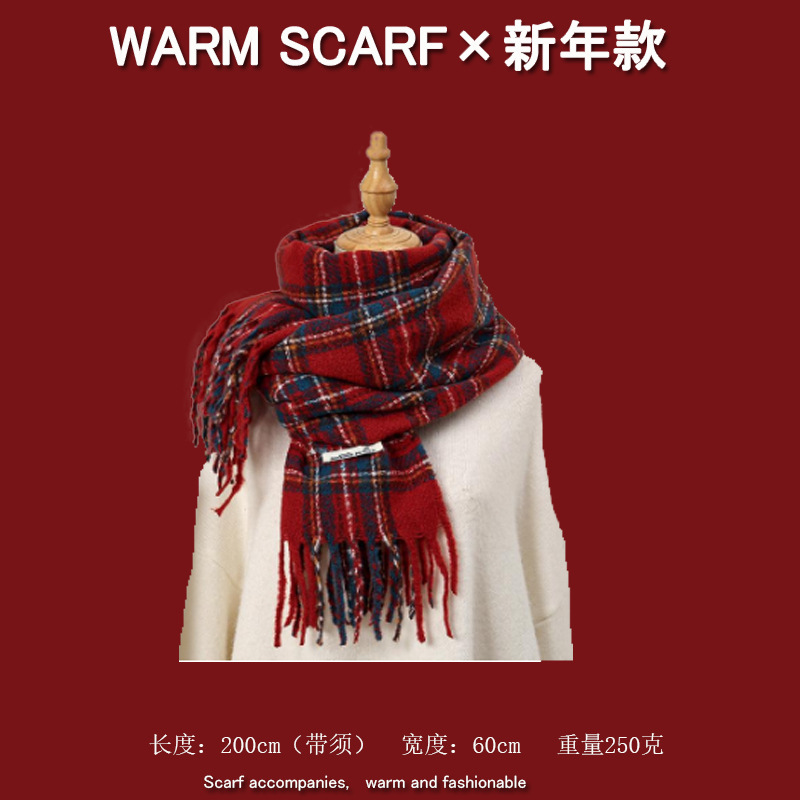 새해 분위기 붉은 격자 무늬 스카프 가을과 겨울 모방 캐시미어 새로운 따뜻한 방한 술 격자 무늬 디자인 스카프스토어 가기