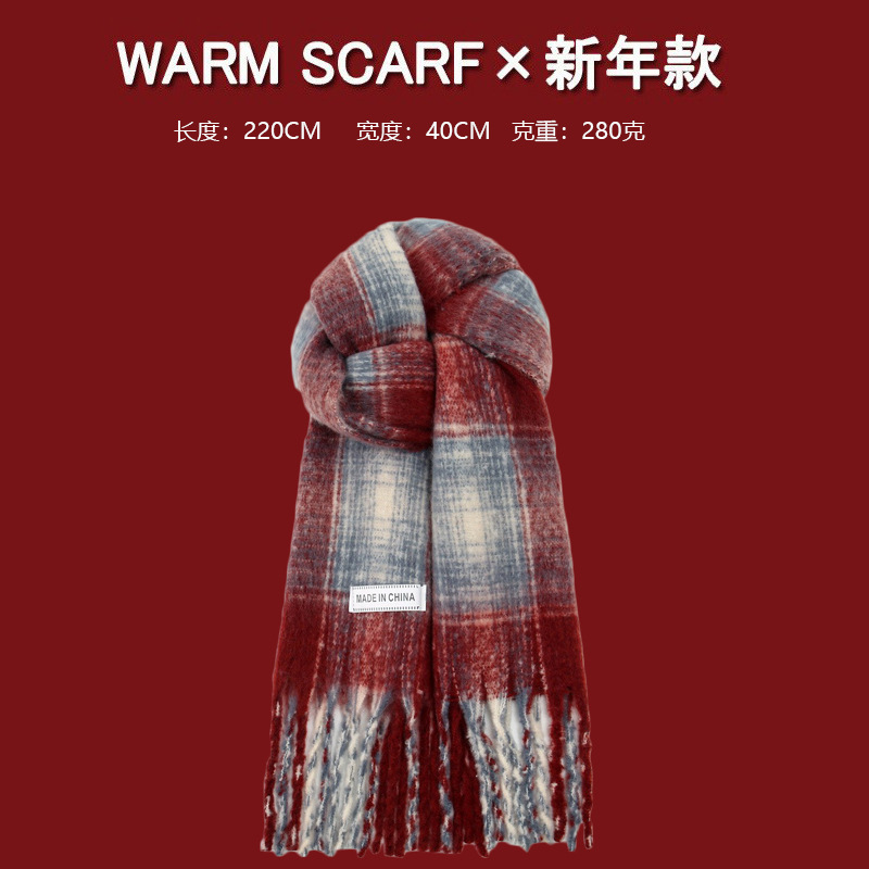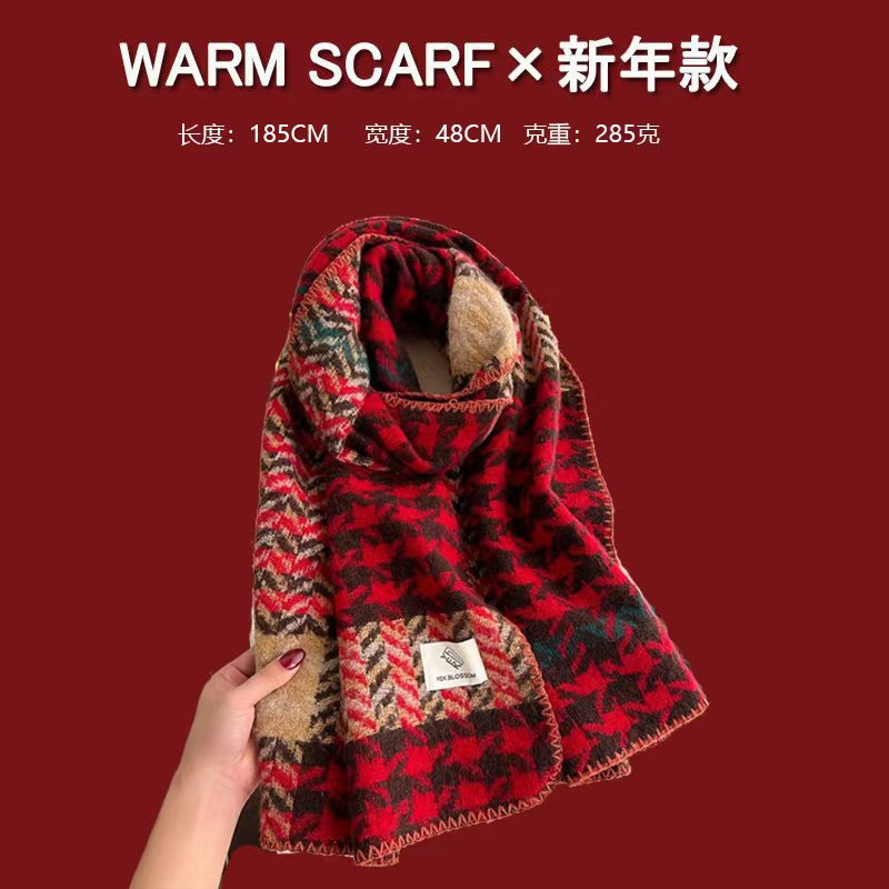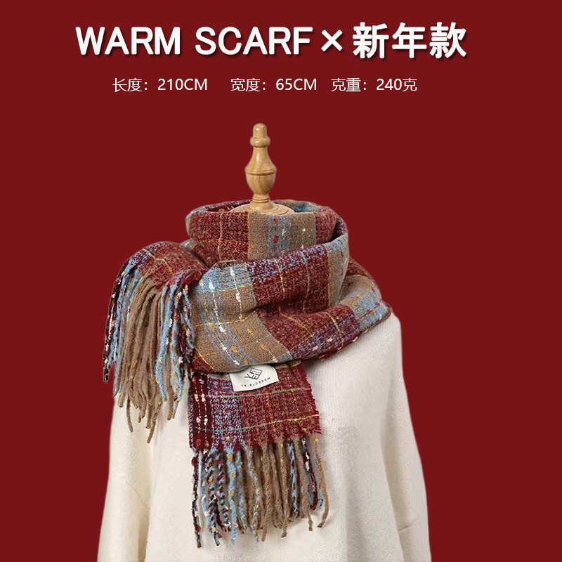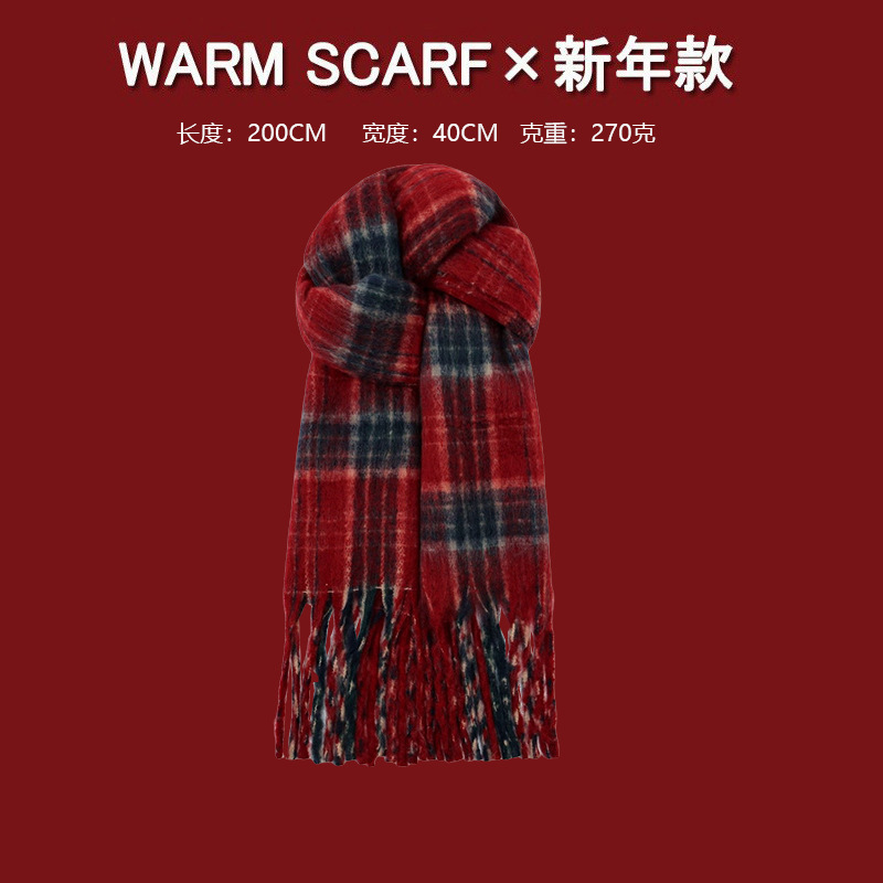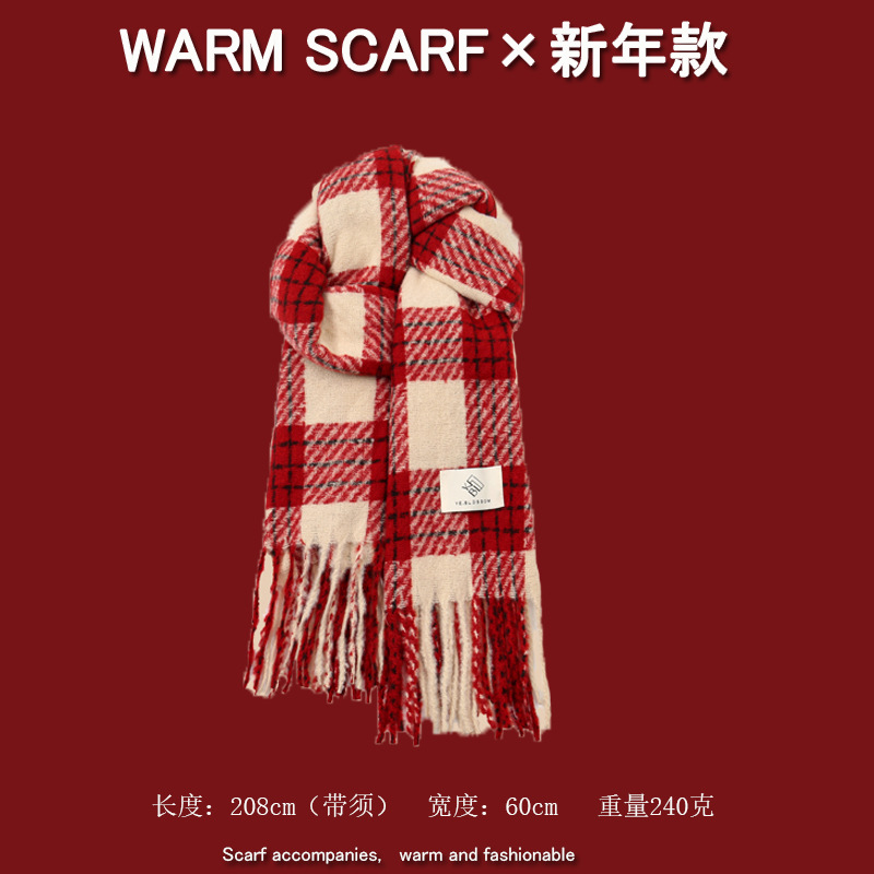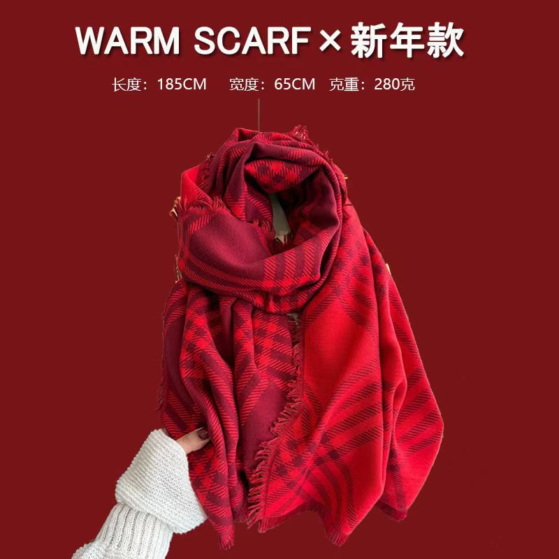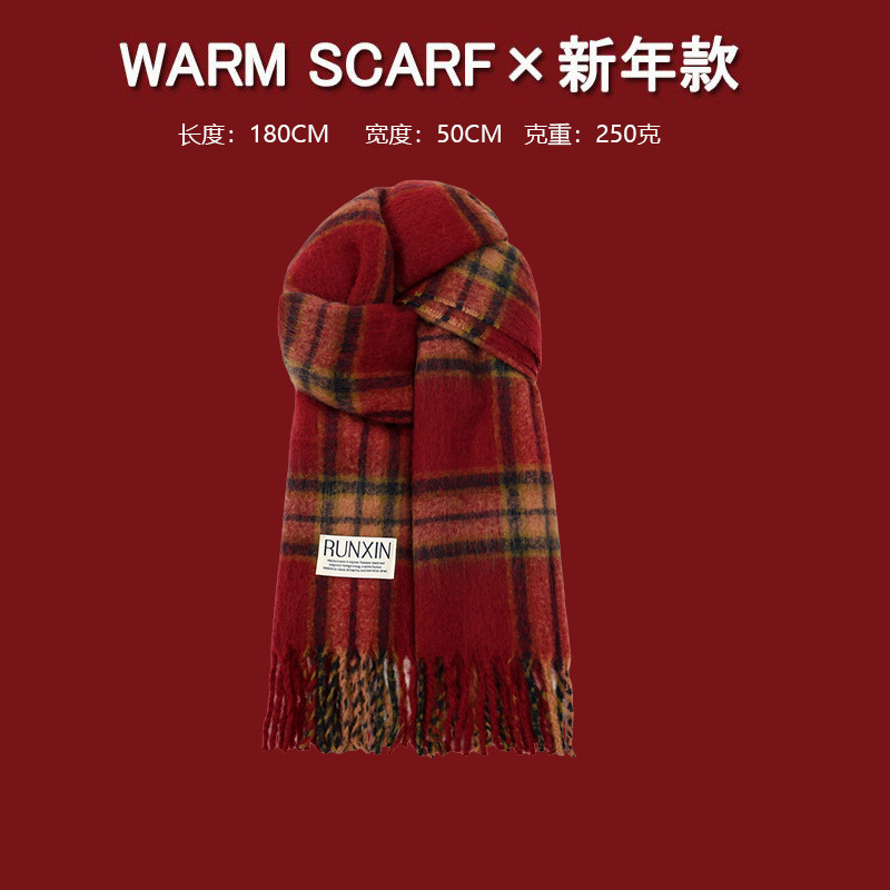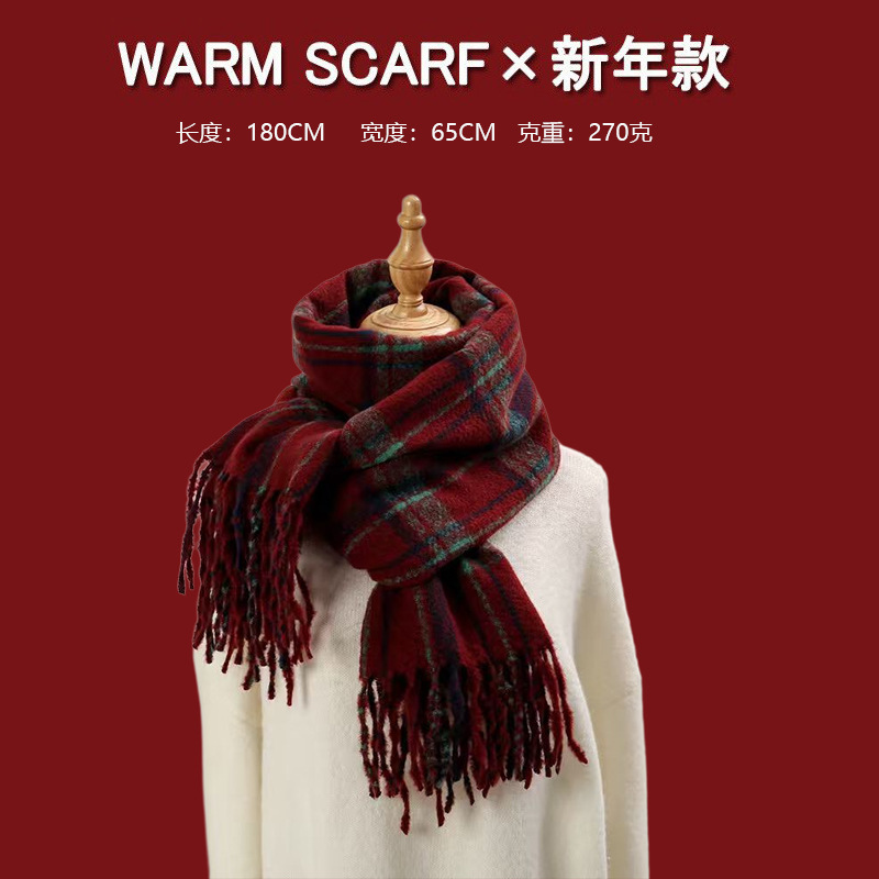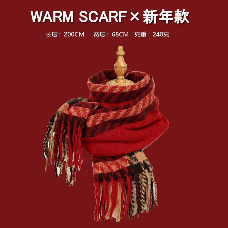 새해 분위기 붉은 격자 무늬 스카프 가을과 겨울 모방 캐시미어 새로운 따뜻한 방한 술 격자 무늬 디자인 스카프스토어 가기
