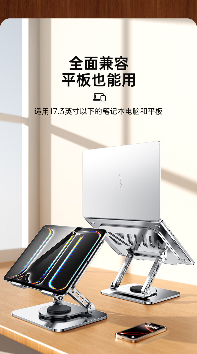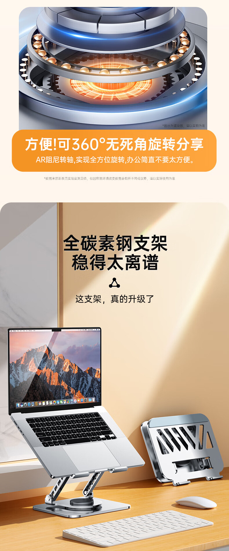 모든 금속 노트북 브래킷 탄소 강철 360 도 회전 접이식 리프팅 데스크탑 플랫 지원 프레임스토어 가기