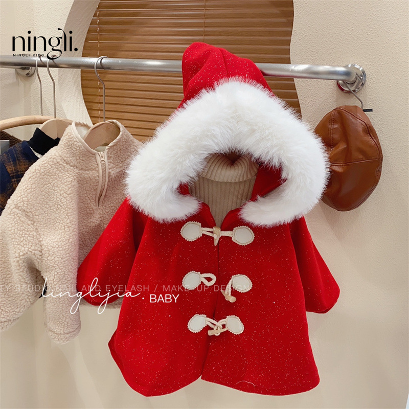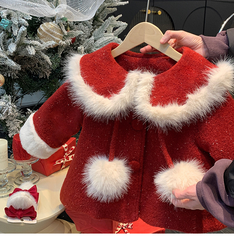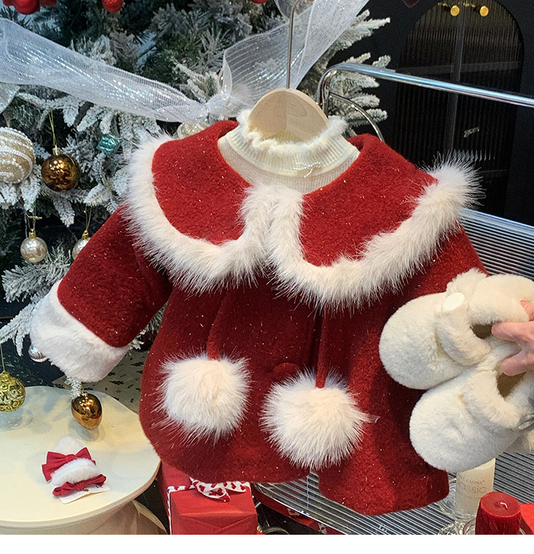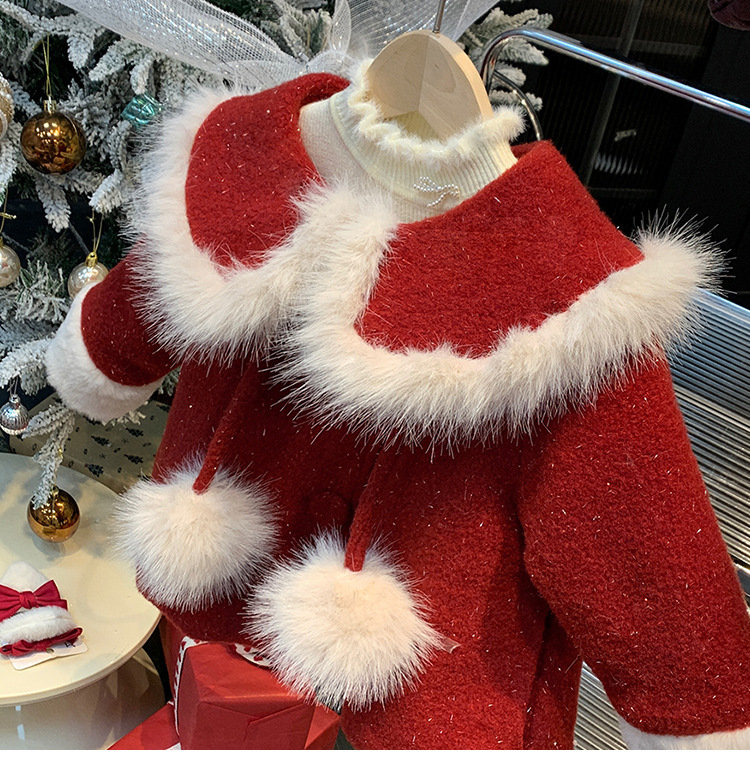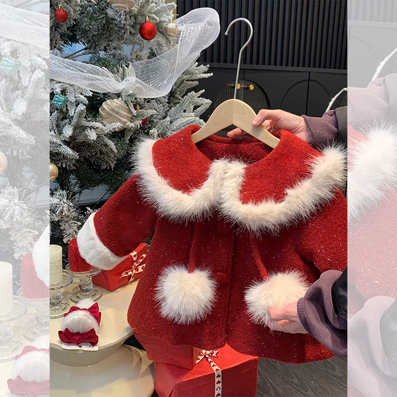 라임 소녀의 빨간 코트 겨울 신년 옷 코트 아기 소녀의 기모 두꺼운 양모 코트스토어 가기