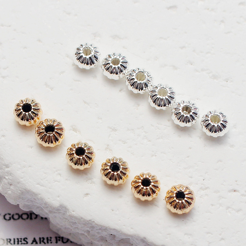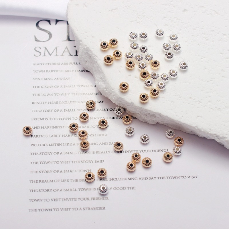 14K 골드 컬러 중공 멜론 구슬 골드 구슬 DIY 팔찌 목걸이 수제 보석 액세서리 4mm스토어 가기