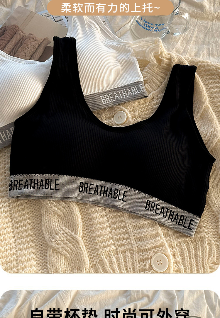소녀의 traceless 속옷 스포츠 편지 브라 일본 학생 중학생 고등학생 아름다운 뒷브래지어 편안한 얇은