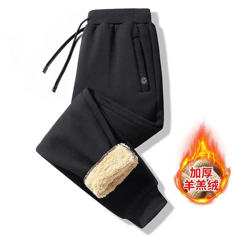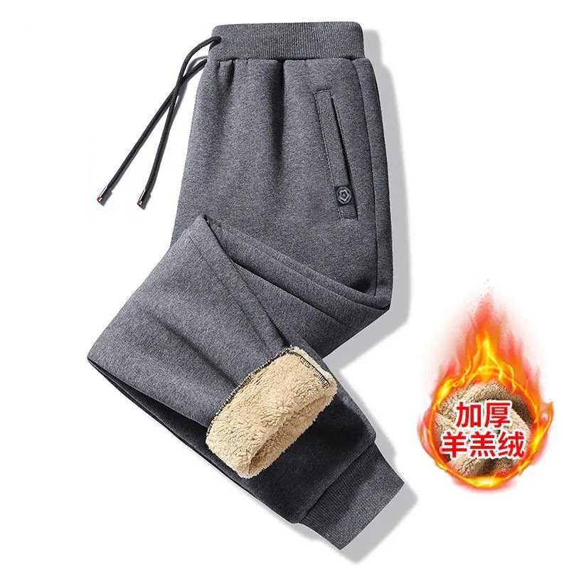 가을과 겨울 양고기 양털 여분의 두꺼운 양털 바지 남성용 따뜻한 청소년 중년 및 노인 느슨한 발가락 지퍼 캐주얼 바지