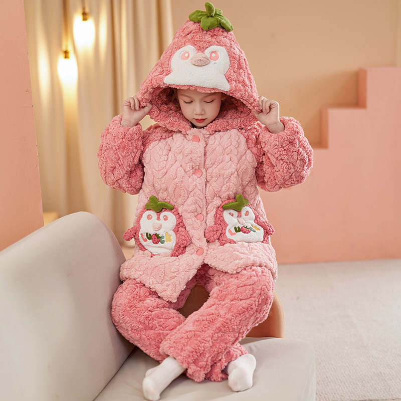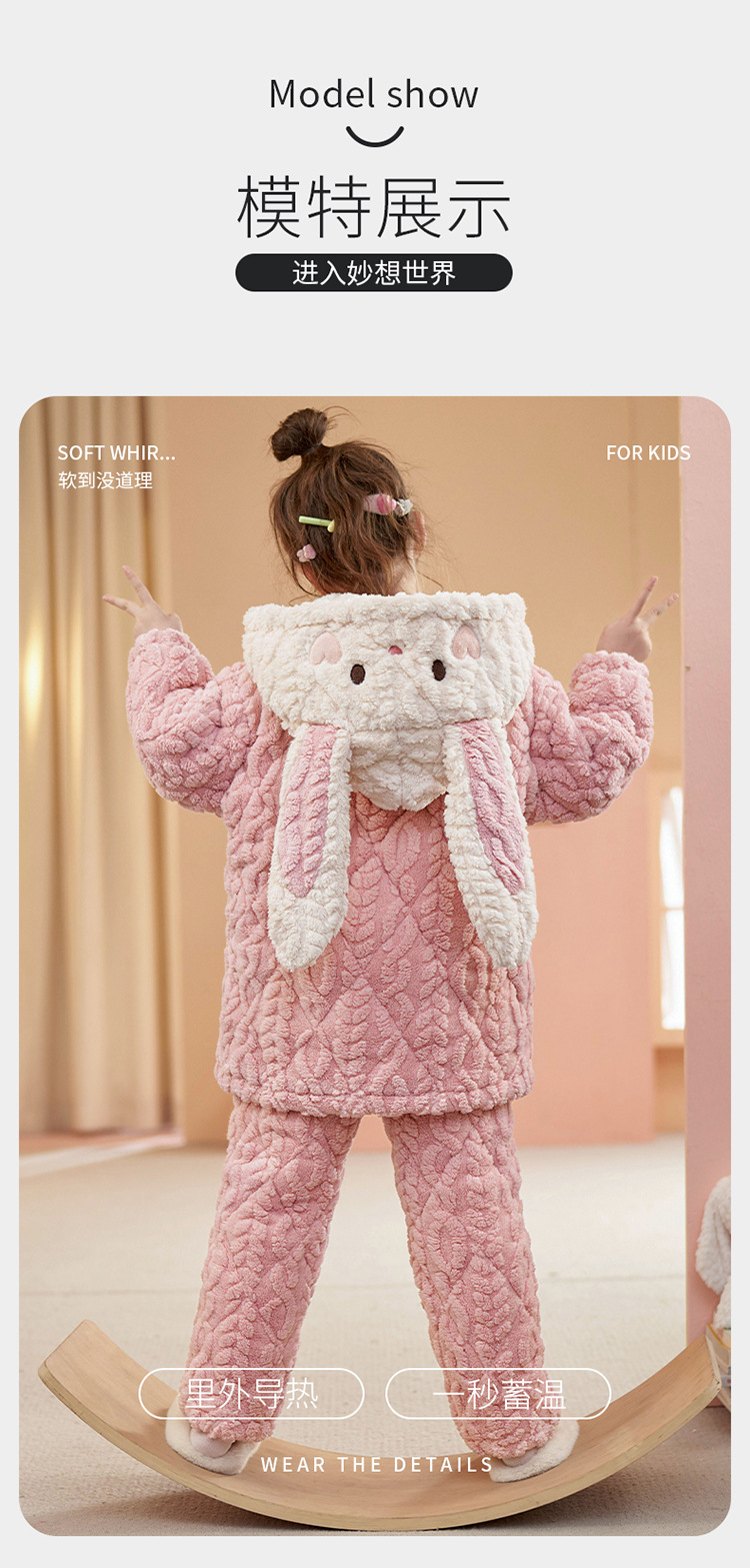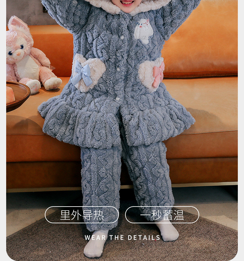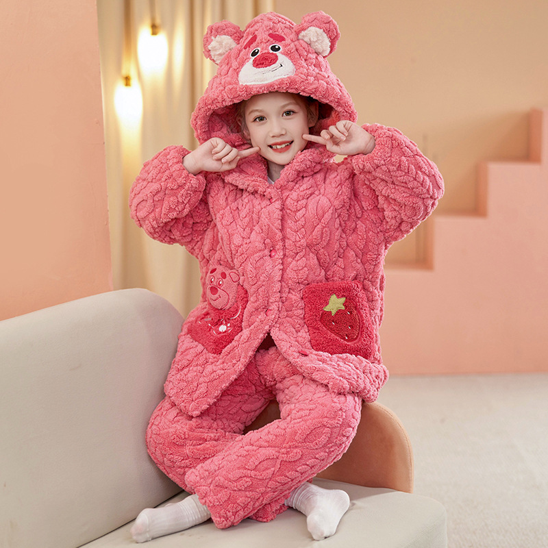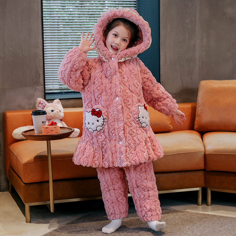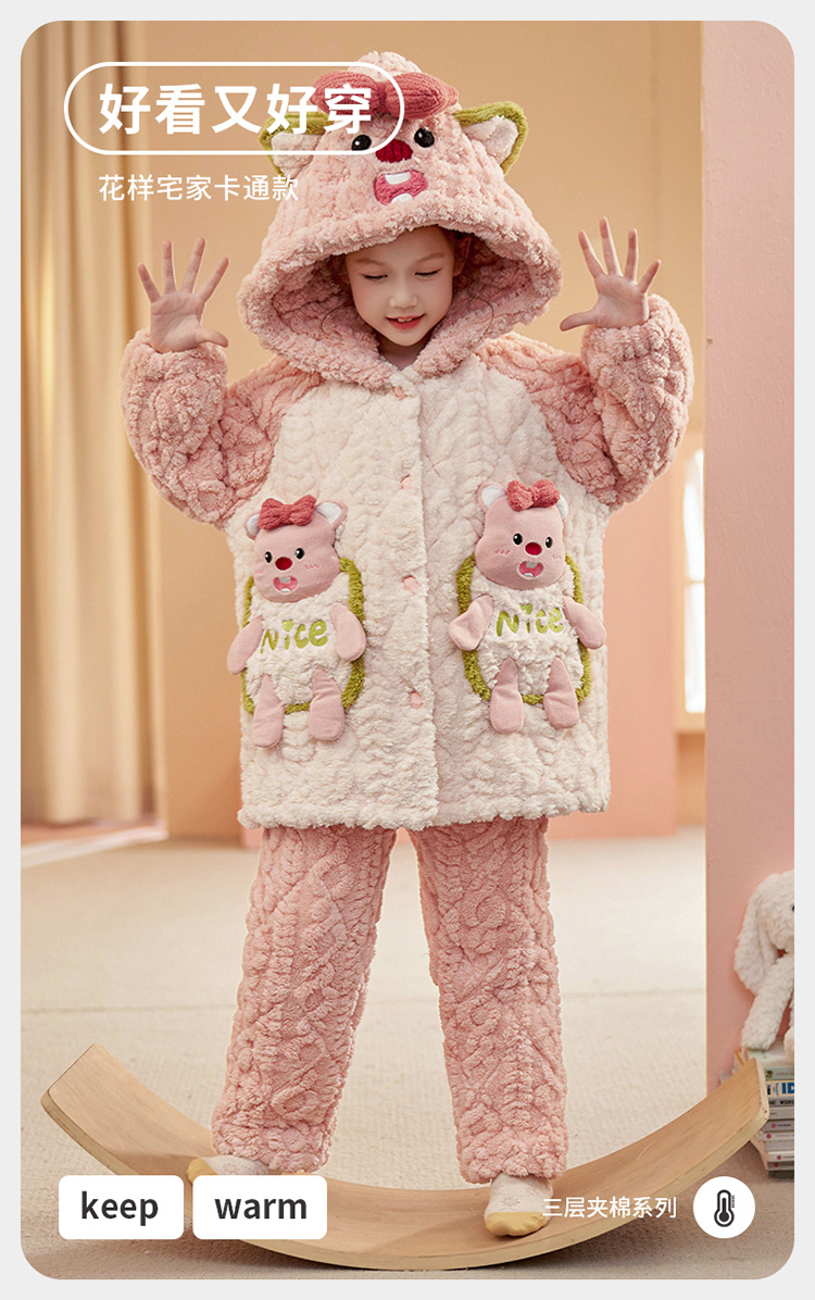 어린이 산호 양털 잠옷 소녀 기모 두꺼운 겨울 큰 어린이 만화 3 층 면화 포장 홈 의류 세트스토어 가기