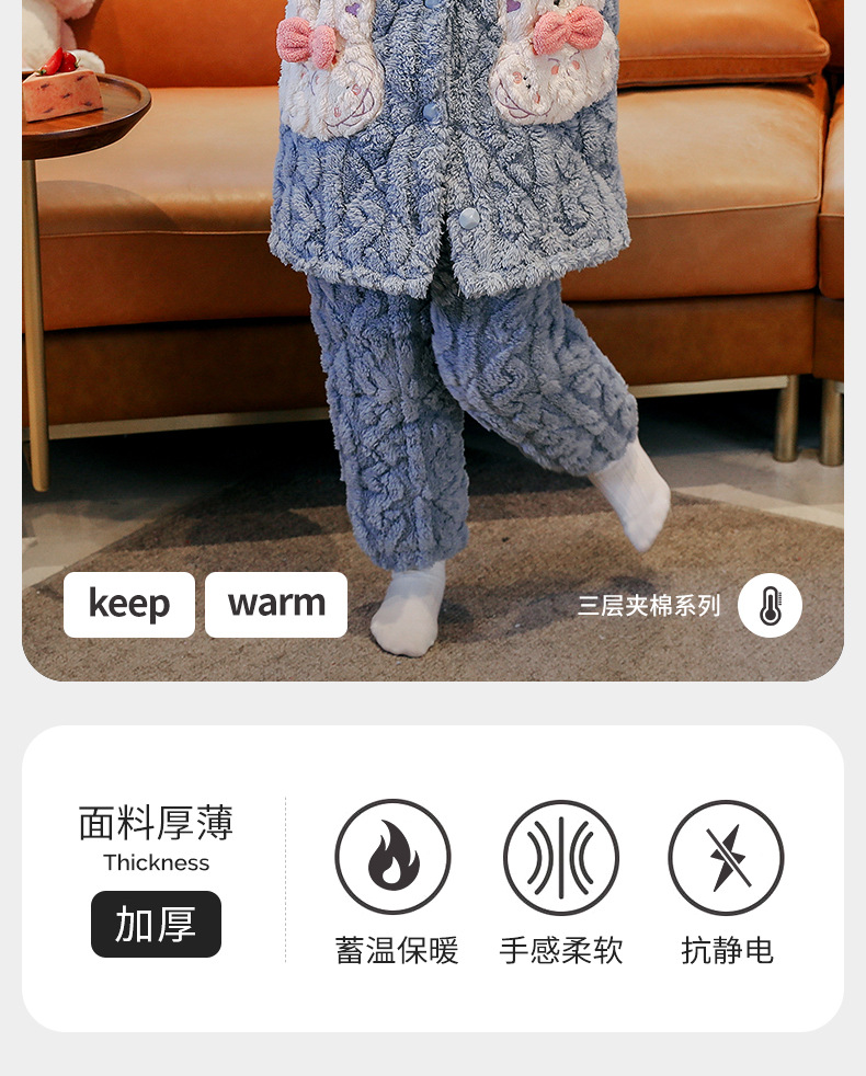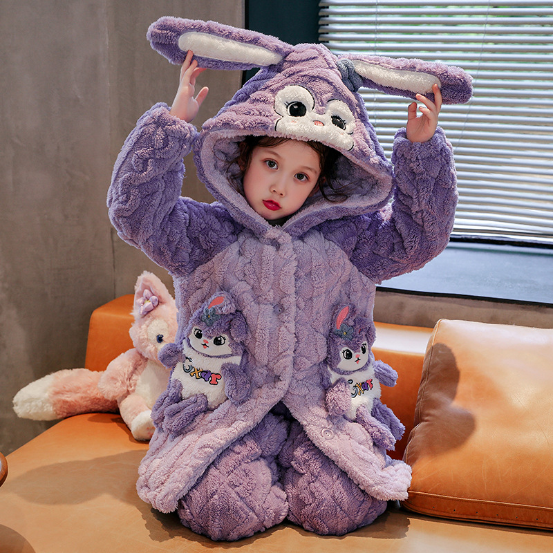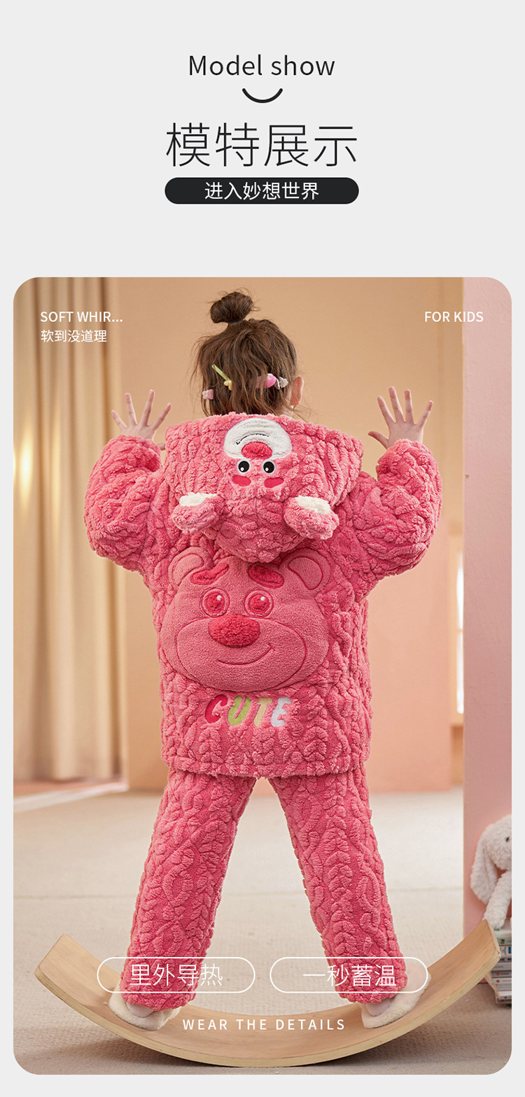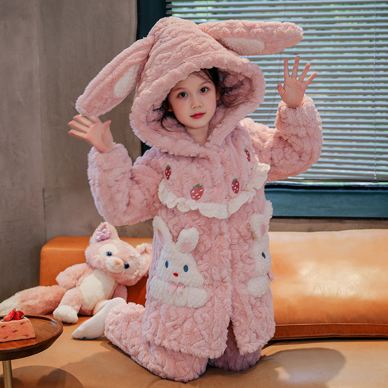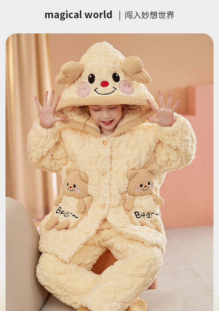 어린이 산호 양털 잠옷 소녀 기모 두꺼운 겨울 큰 어린이 만화 3 층 면화 포장 홈 의류 세트스토어 가기