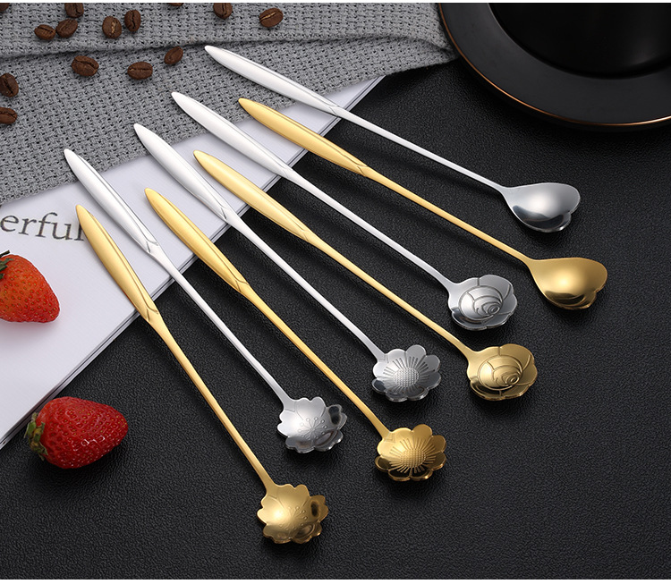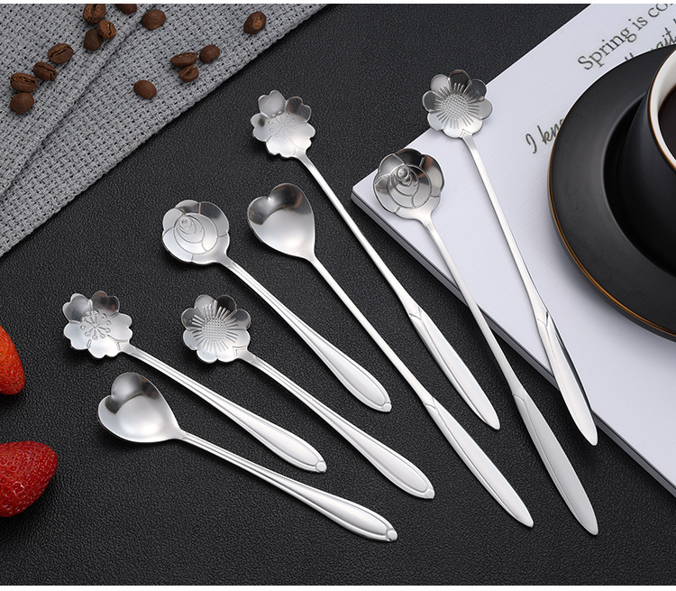 스테인레스 스틸 벚꽃 스푼 긴 손잡이 교반 스푼 크리 에이 티브 커피 스푼 디저트 스푼 꿀 스푼 스푼 확장 교반 스푼