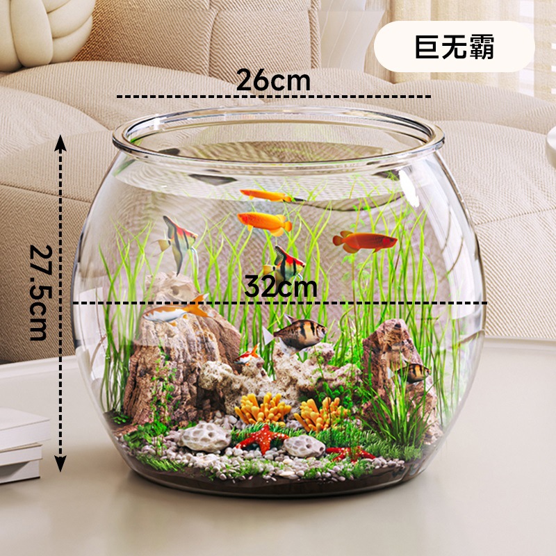 작은 물고기 탱크 투명한 대형 데스크탑 두꺼운 거북이 탱크 금붕어 탱크 수경 거실 플라스틱 낙하 방지 조경 생태 탱크스토어 가기