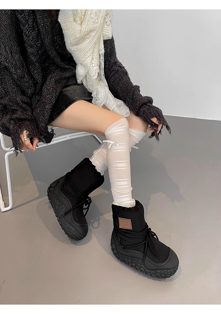 두꺼운 밑창 스노우 부츠 여성의 2024 겨울 새로운 통통한 두꺼운 따뜻한 미끄럼 방지 북동쪽 면화 상포 못생긴 귀여운 부츠