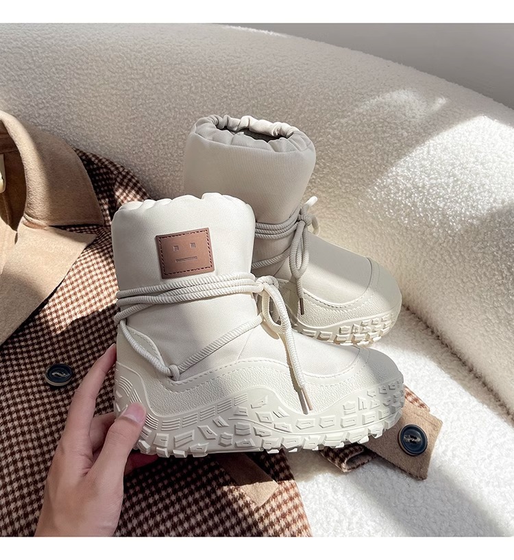 두꺼운 밑창 스노우 부츠 여성의 2024 겨울 새로운 통통한 두꺼운 따뜻한 미끄럼 방지 북동쪽 면화 상포 못생긴 귀여운 부츠스토어 가기