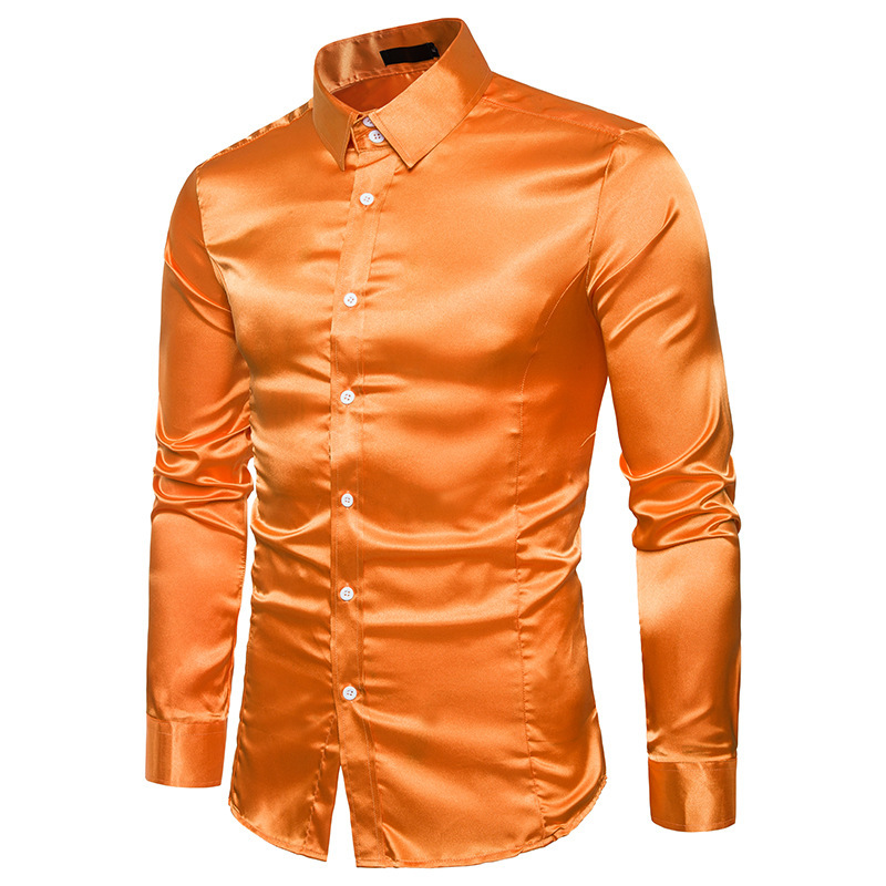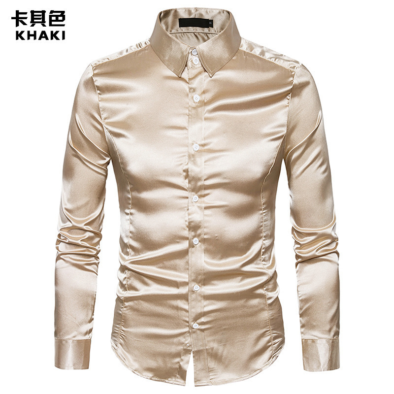 2025년 대외 무역 도매 유럽 사이즈 남성 캐주얼 패션 광택 긴팔 라펠 셔츠 새틴 셔츠 A35