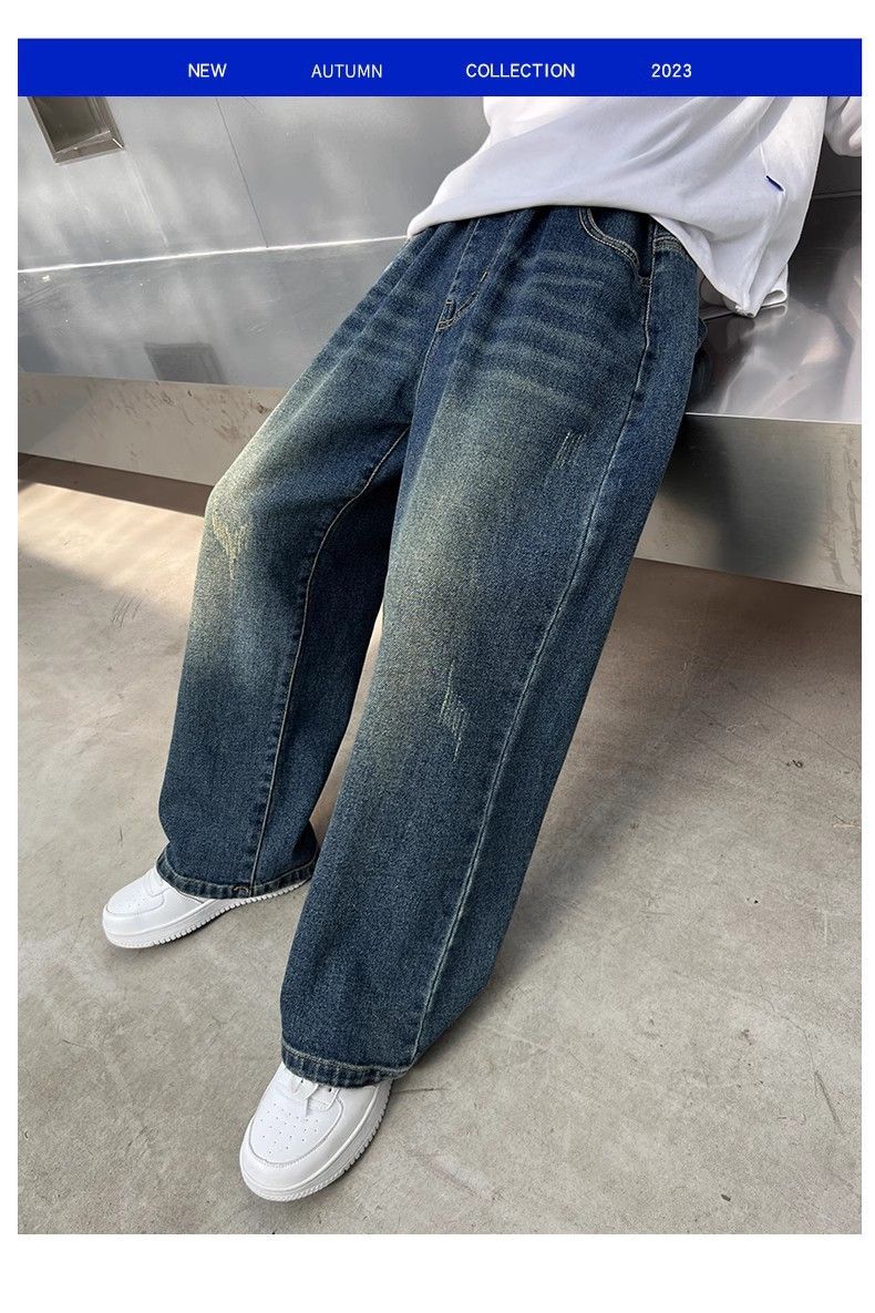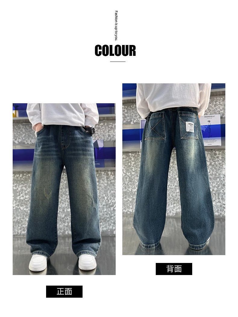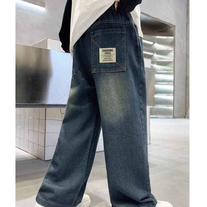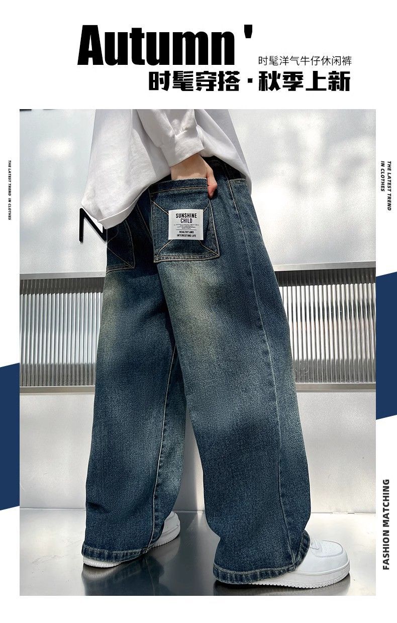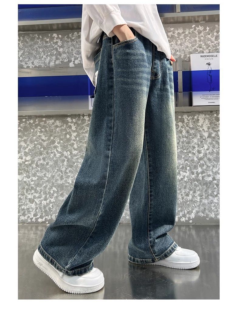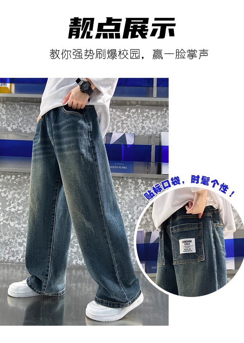 남자들의 스트레이트 트렌디 팬츠 2024 봄과 가을 새로운 중대형 어린이 청바지 느슨한 한국식 와이드 레그 트렌디 팬츠스토어 가기