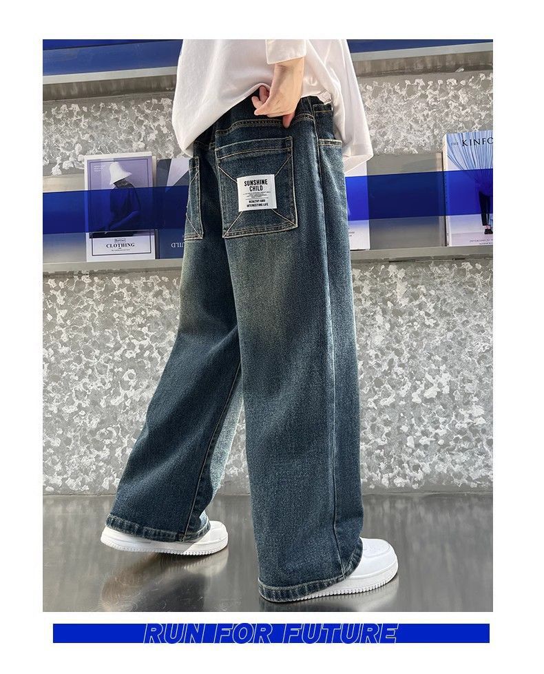 남자들의 스트레이트 트렌디 팬츠 2024 봄과 가을 새로운 중대형 어린이 청바지 느슨한 한국식 와이드 레그 트렌디 팬츠