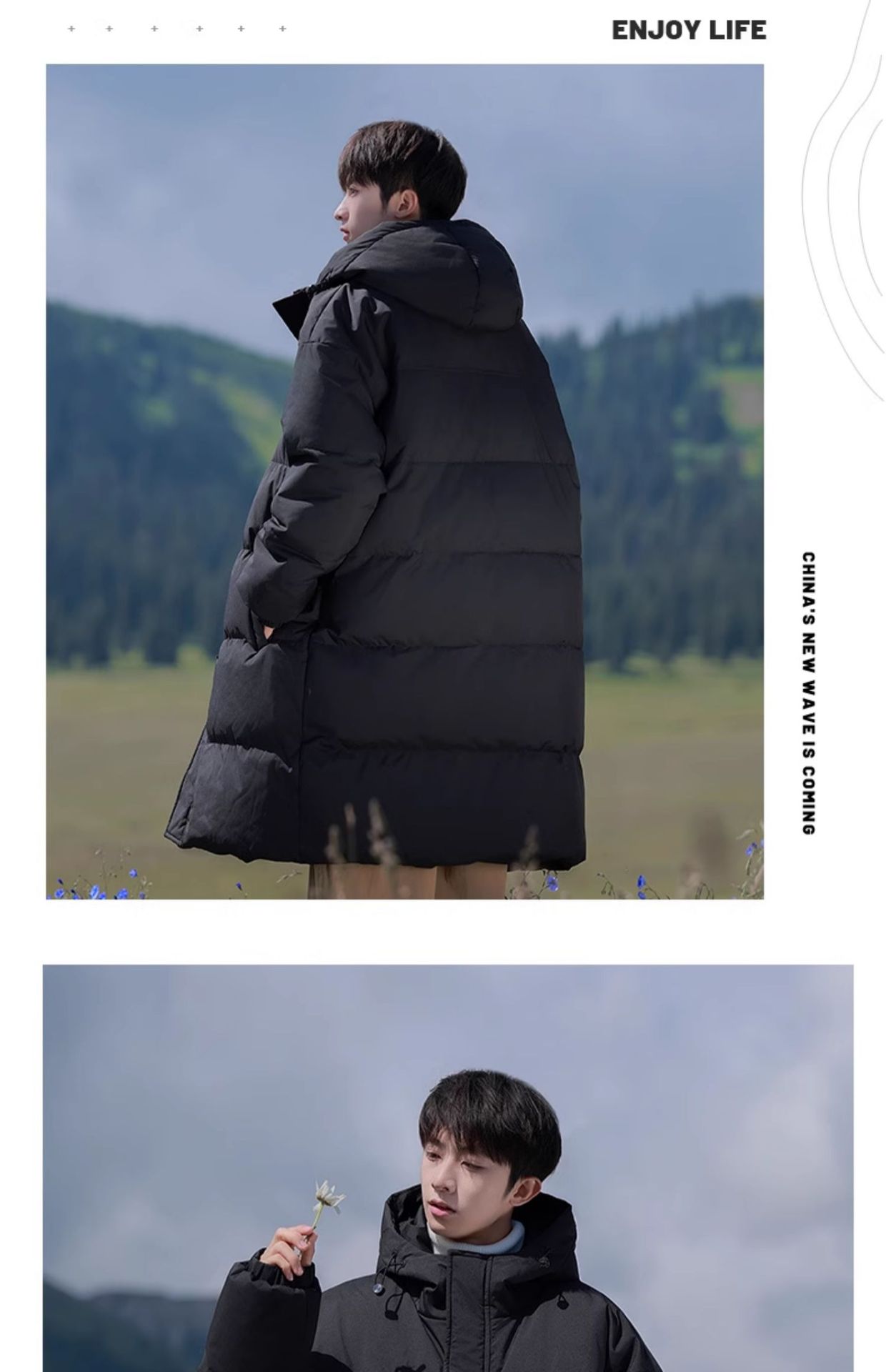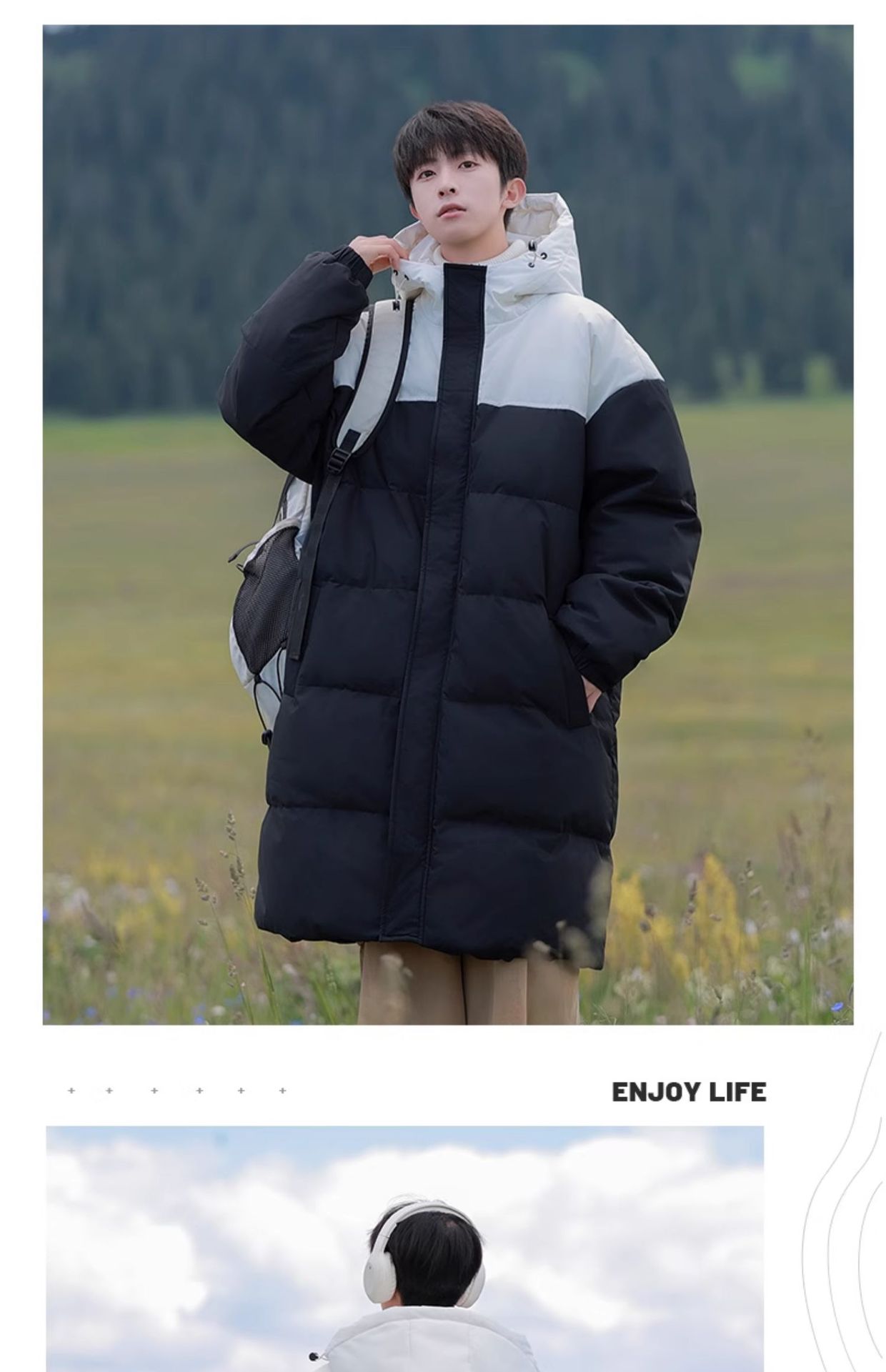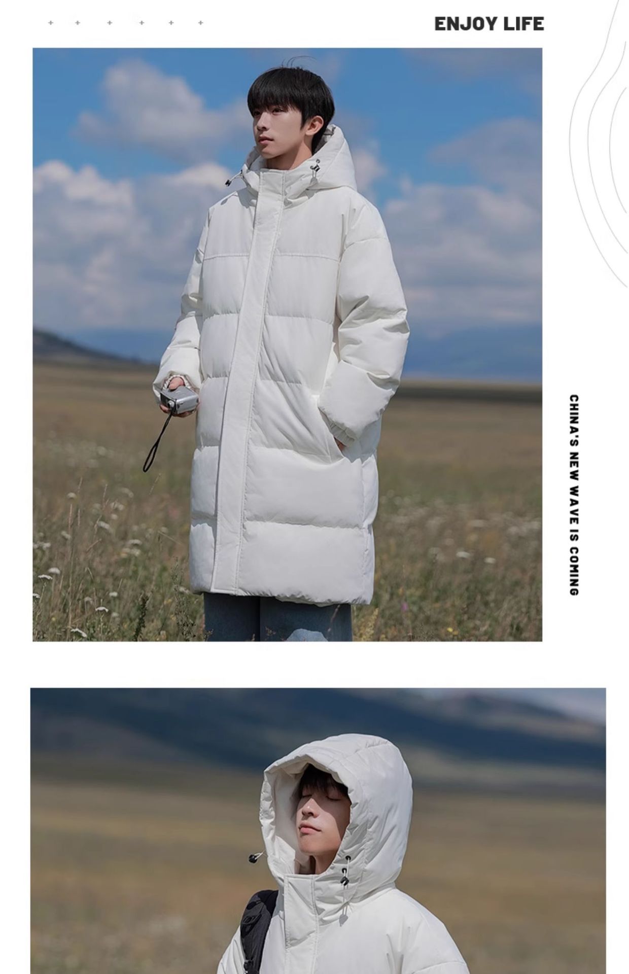 NASA 미국 중간 길이의 후드 코튼 패딩 재킷 남자 겨울 2024 두꺼운 코튼 패딩 코트 따뜻한 방한 재킷스토어 가기