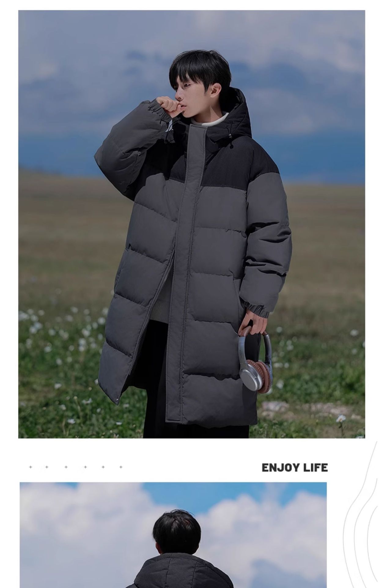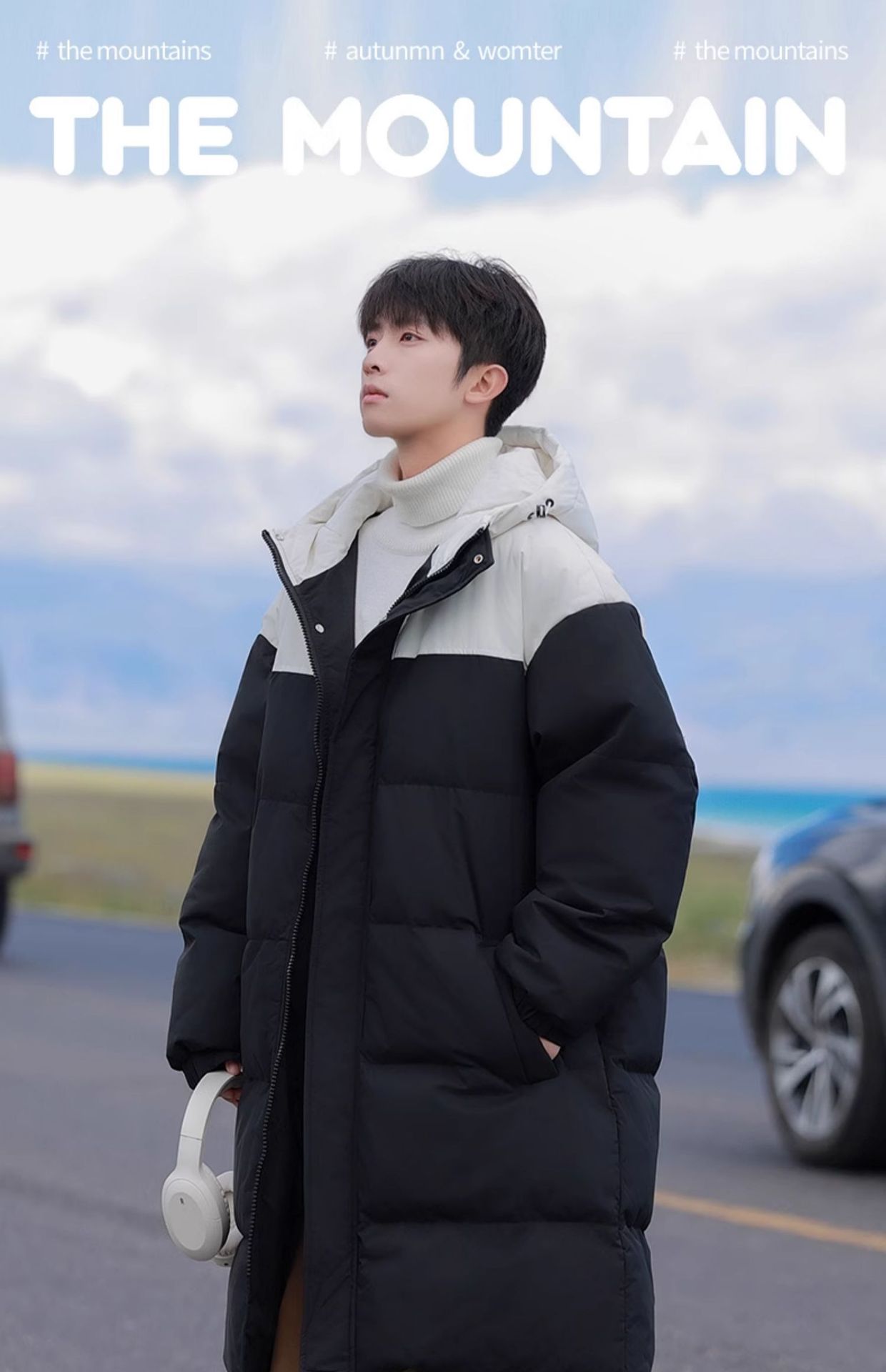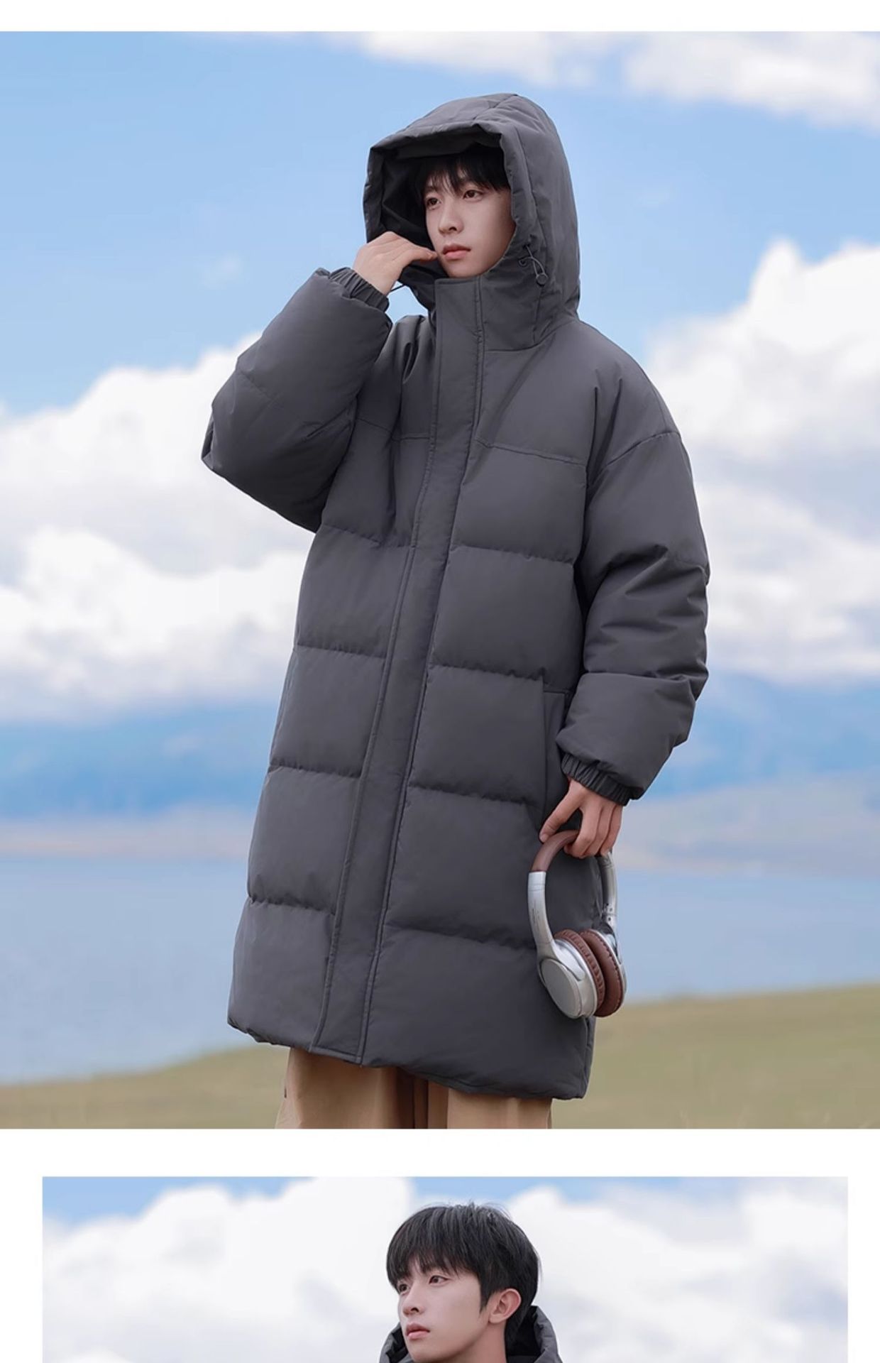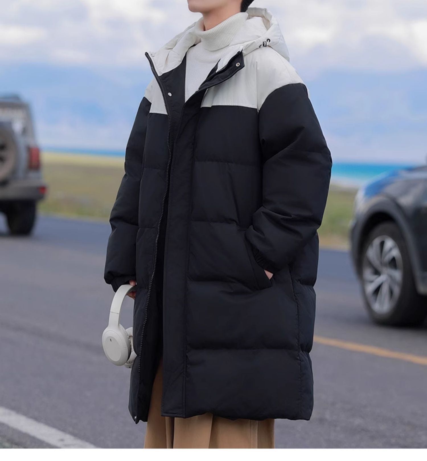 NASA 미국 중간 길이의 후드 코튼 패딩 재킷 남자 겨울 2024 두꺼운 코튼 패딩 코트 따뜻한 방한 재킷스토어 가기
