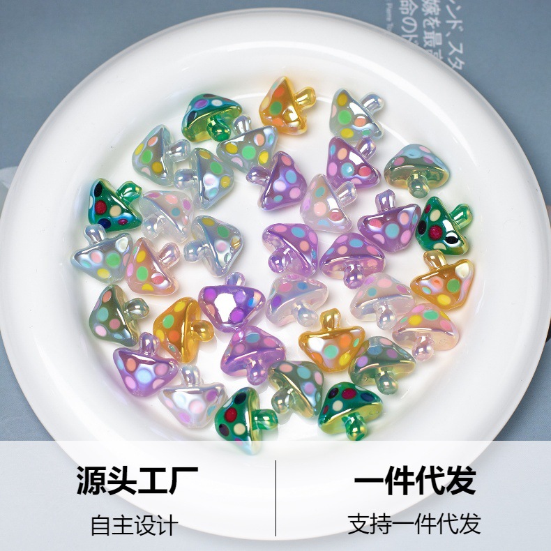 마베이 전기 도금 수지 만화 모양의 느슨한 구슬 빛나는 작은 버섯 구슬 DIY 휴대 전화 체인 보석 액세서리 재료