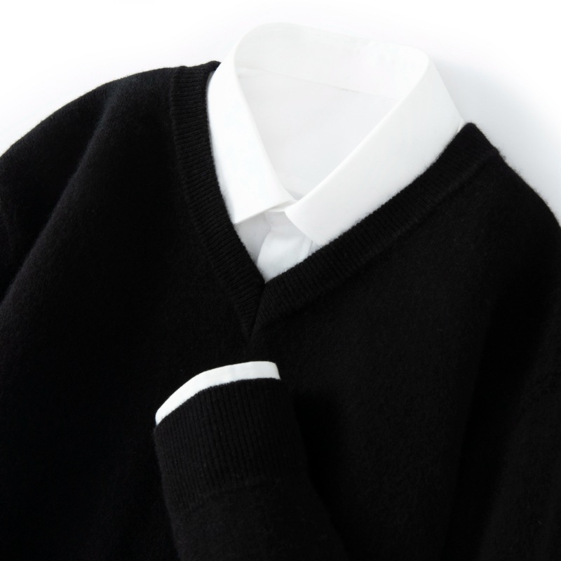 국경 간 라이브 하이 엔드 비즈니스 캐주얼 V 넥 캐시미어 남성용 새 긴팔 풀오버 스웨터 셔츠
