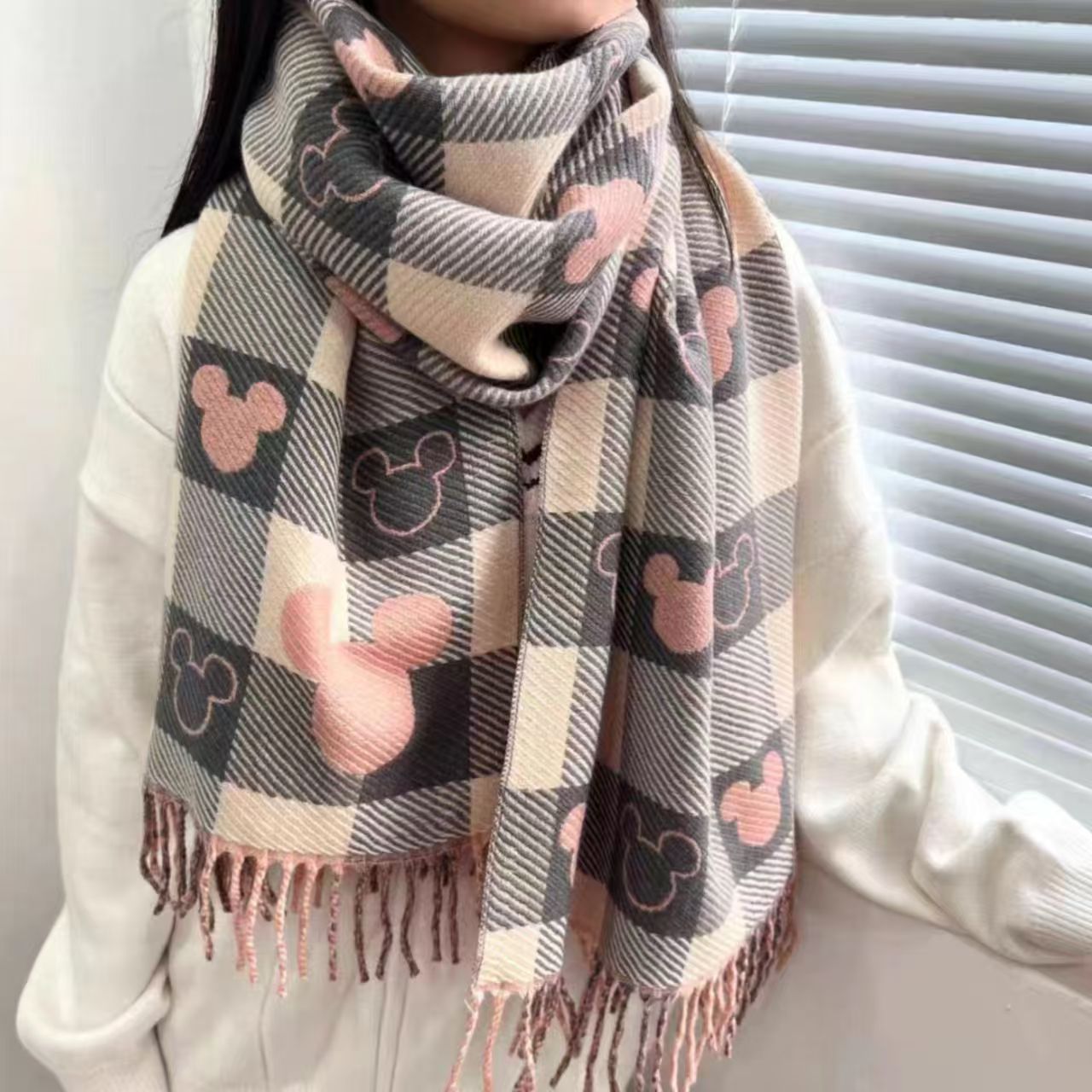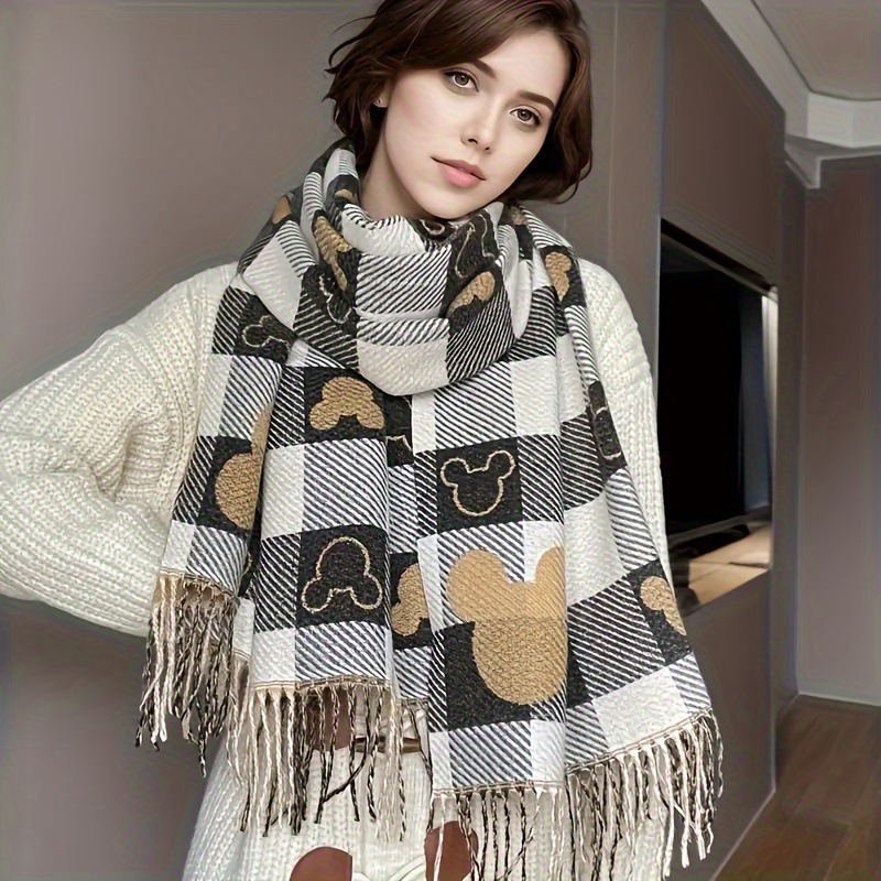 테무 시인 크로스보더 스카프 유럽 및 미국 여성용 봄, 가을, 겨울용 모조 캐시미어 체크무늬 두꺼운 스카프 다용도 숄스토어 가기