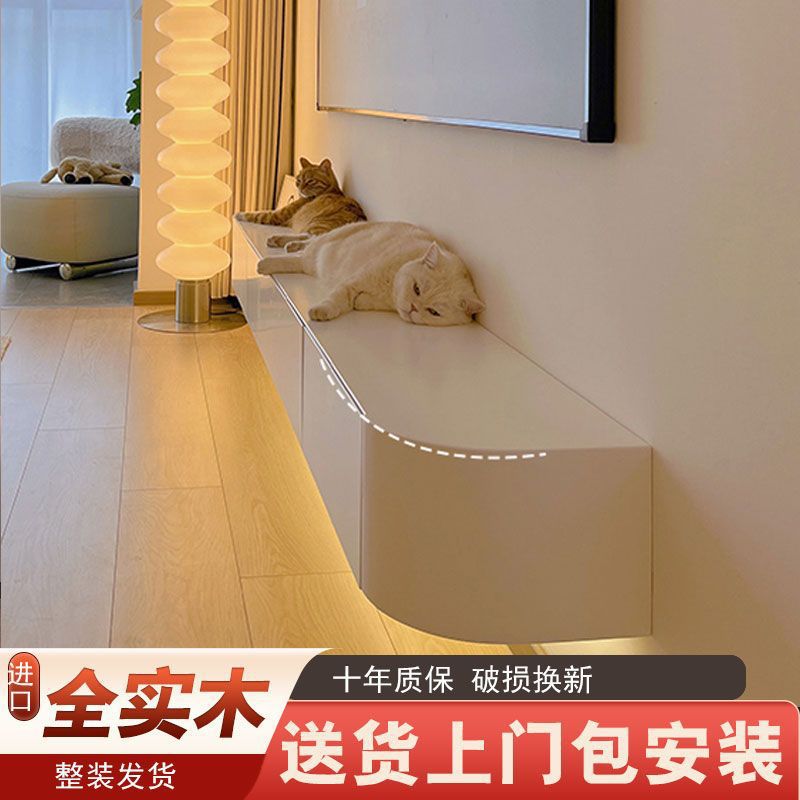 2023 솔리드 우드 교수형 TV 캐비닛 록 보드 매달려 울트라 좁은 벽 교수형 거실 침실 작은 아파트스토어 가기