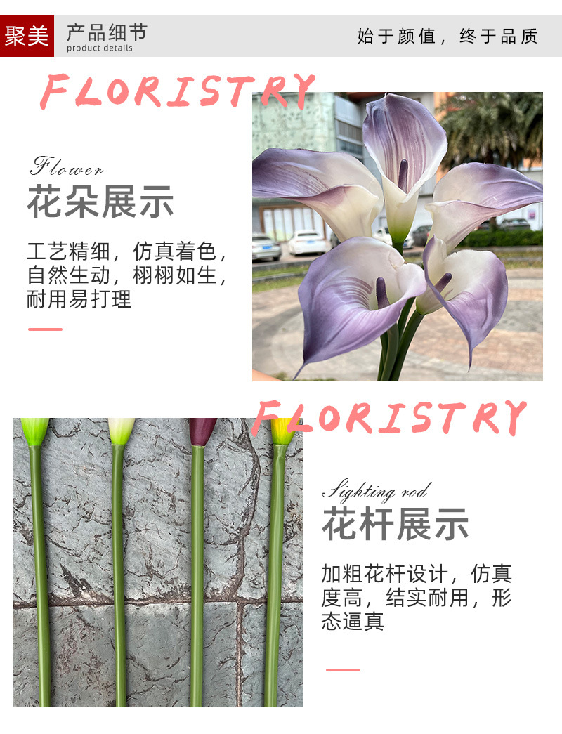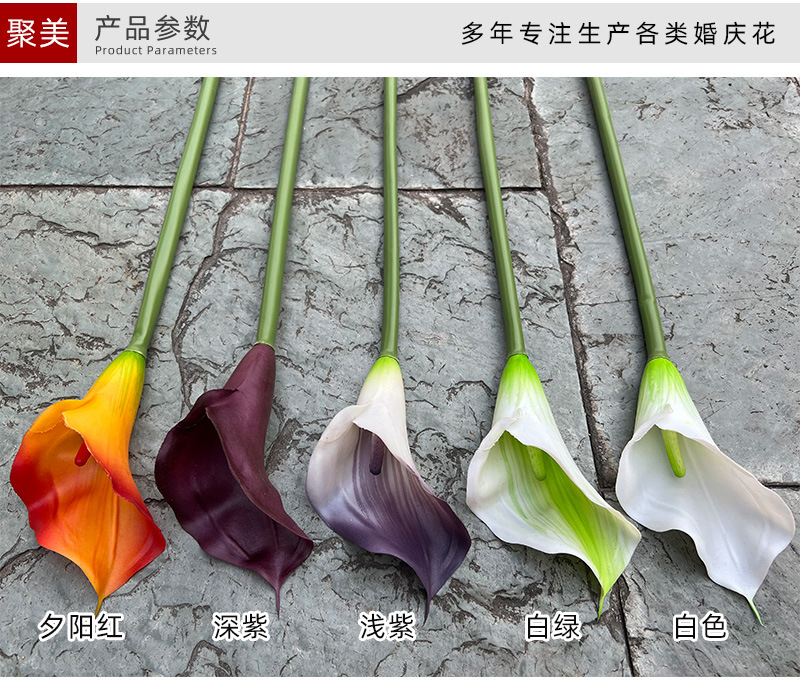 대외 무역 집 새로운 느낌 칼라 백합 Pvc 느낌 칼라 백합 흰색 결혼식 부드러운 가짜 꽃 도매